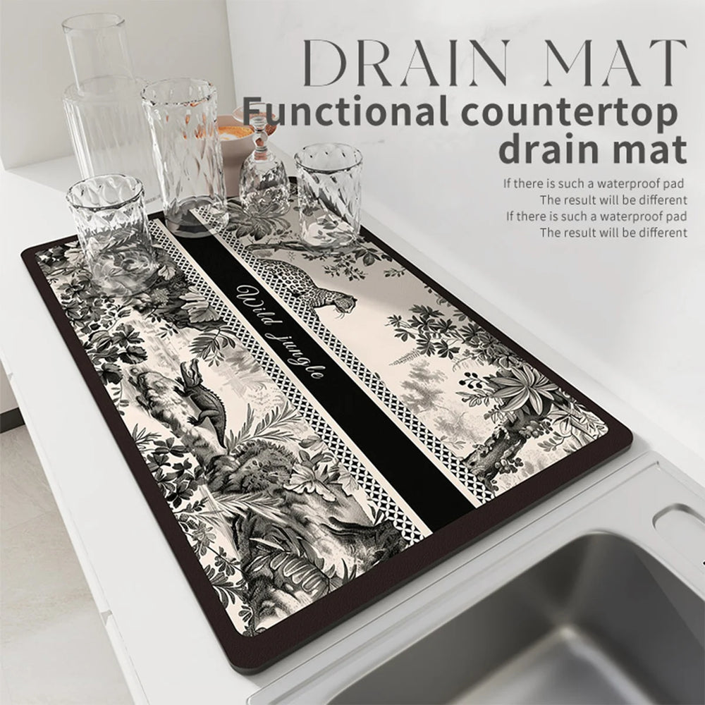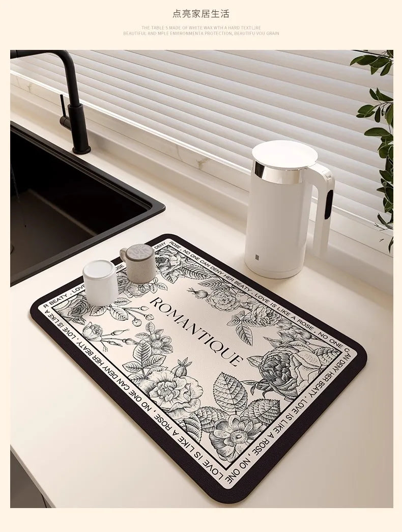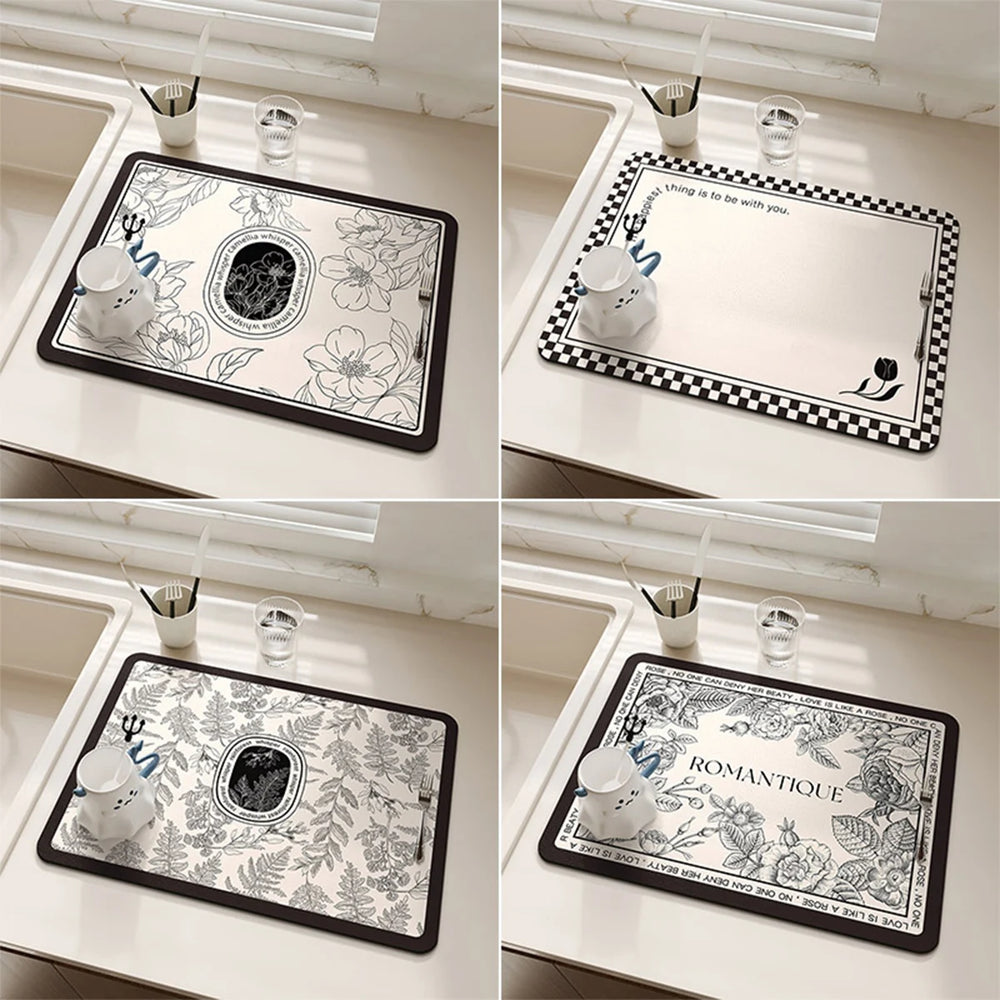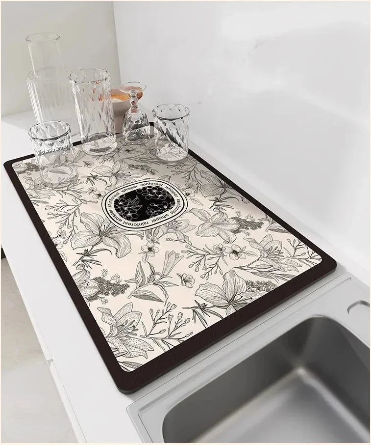 Fügen Sie Ihrer Küche Stil und Effizienz mit unserer Abtropfmatte hinzu, die für schnelle Wasseraufnahme und rutschfreie Nutzung gefertigt ist.