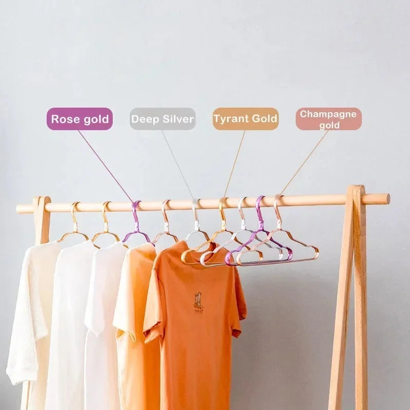 Fügen Sie Ihrem Kleiderschrank Eleganz und Funktionalität hinzu mit unseren hochwertigen Aluminium-Kleiderhaken, die das Verrutschen verhindern und die Qualität der Kleidung erhalten.