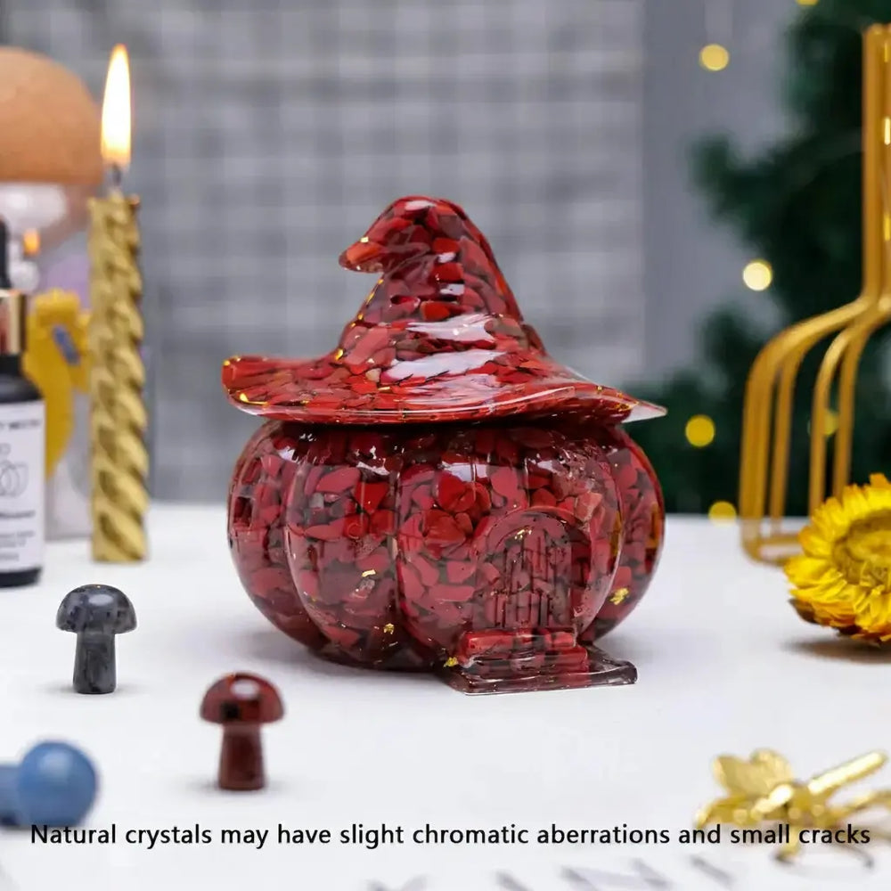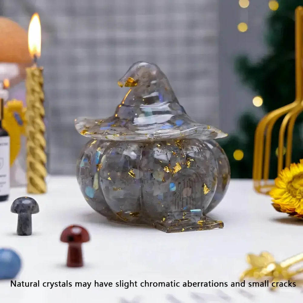 Verwandeln Sie Ihren Raum mit dem bezaubernden Charme unseres Amethyst Kristall Kürbis Schädels – eine perfekte Kombination aus Mystik und Ruhe.