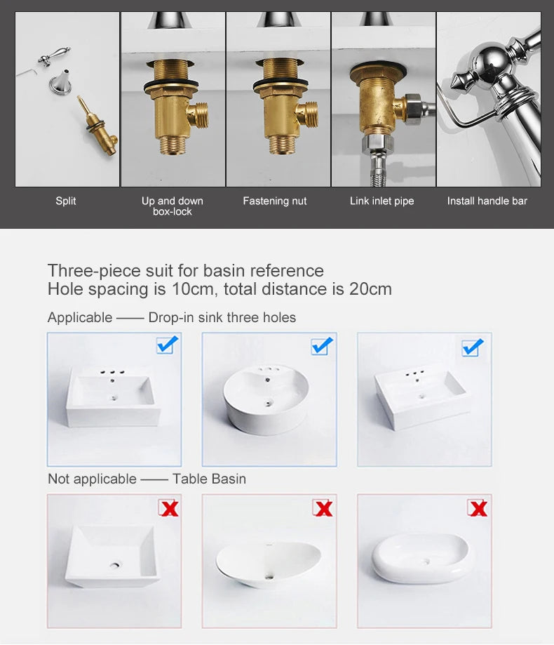 Mit einem Keramikventilkern ausgestattet, sorgt diese Armatur für einen reibungslosen Betrieb und ein tropffreies Erlebnis. Das Zweigriff-Design ermöglicht eine einfache Temperatur- und Durchflussregelung und ist sowohl funktional als auch stilvoll.