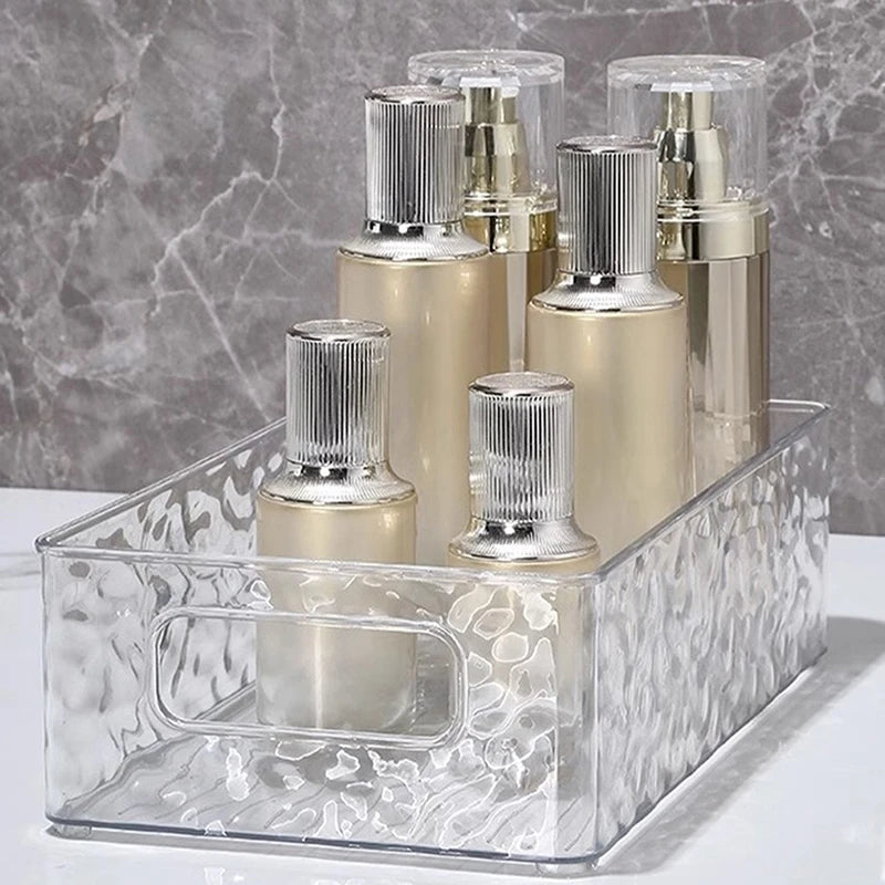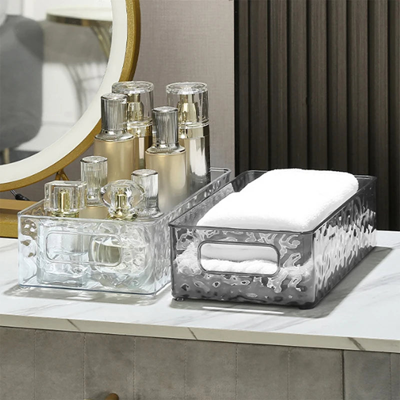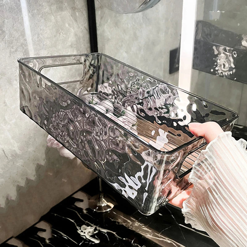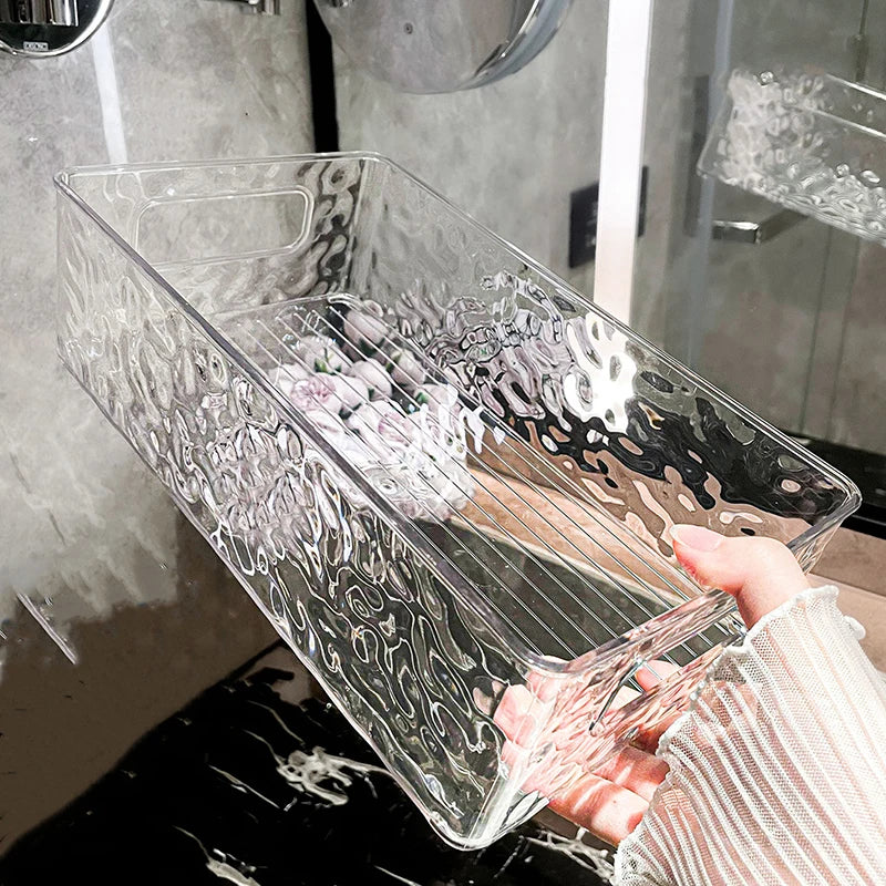 Die Wasserwellenstruktur mit klarem Design ermöglicht schnellen Zugriff auf Ihre Gegenstände und sorgt dafür, dass Effizienz und Stil Hand in Hand gehen. Die stapelbare Eigenschaft hilft, vertikalen Platz zu nutzen, ohne zu überfüllen. Perfekt für Toilettenartikel, Hautpflege, Make-up oder Schmuck.