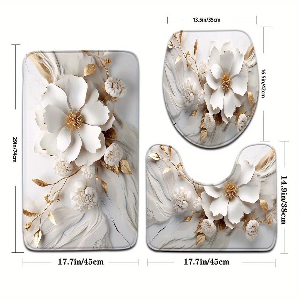 Verwandeln Sie Ihr Badezimmer in eine Oase der Ruhe mit unserem exquisiten 3-teiligen Blüten-Badezimmermatten-Set. Entworfen, um Stil und Funktionalität zu vereinen, ist dieses Matten-Set perfekt, um Ihrem Raum einen Hauch moderner Eleganz zu verleihen.