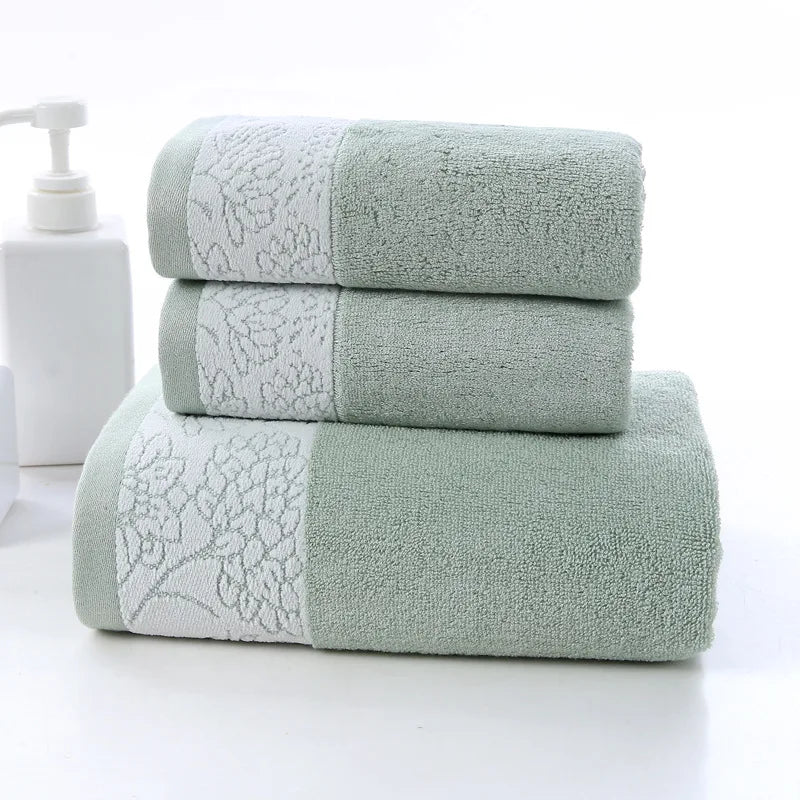 Das Set umfasst ein grosszügig bemessenes Badetuch und zwei Handtücher, alle aus umweltfreundlichem Bambusmaterial, mit schlichtem geometrischem Muster gefärbt und maschinenwaschbar für einfache Pflege. Ihre schnelle Absorption sorgt nach jedem Gebrauch für ein reibungsloses Trockenerlebnis.