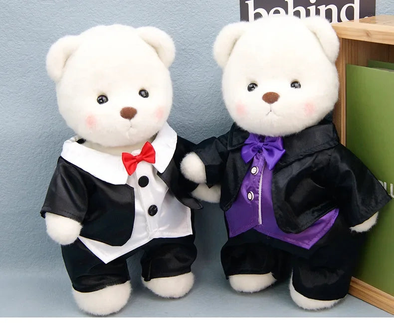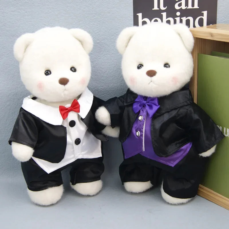 Wir bieten eine Reihe von Optionen, darunter Hosenträger, Westen, Anzüge und mehr, ohne das Plüschtier.