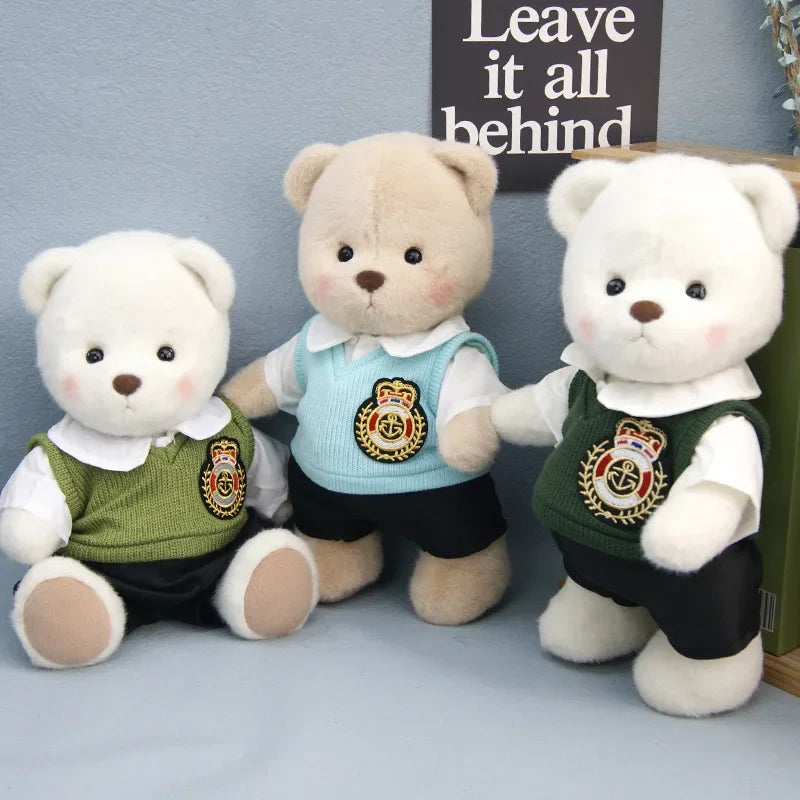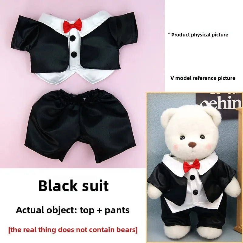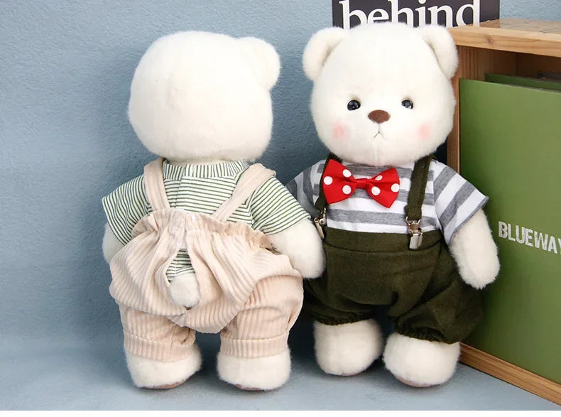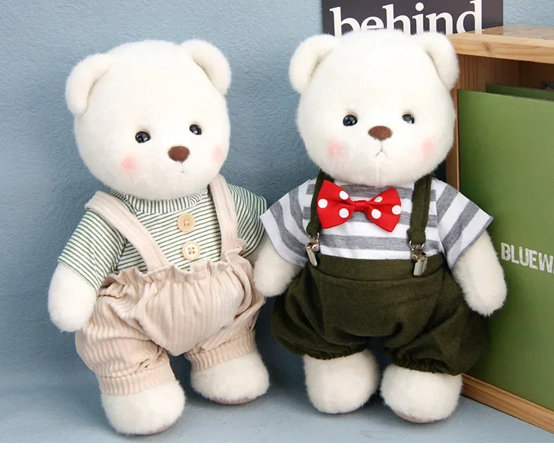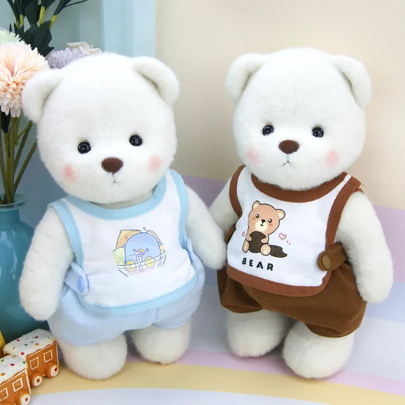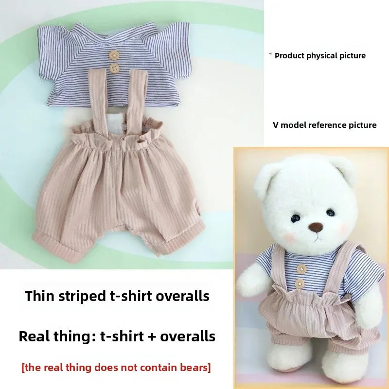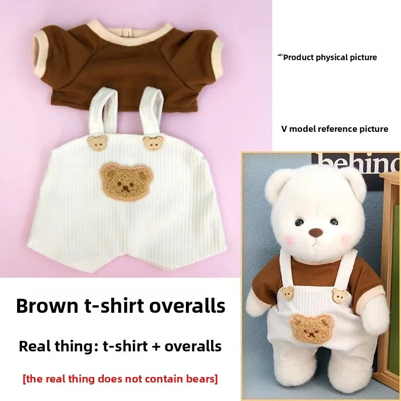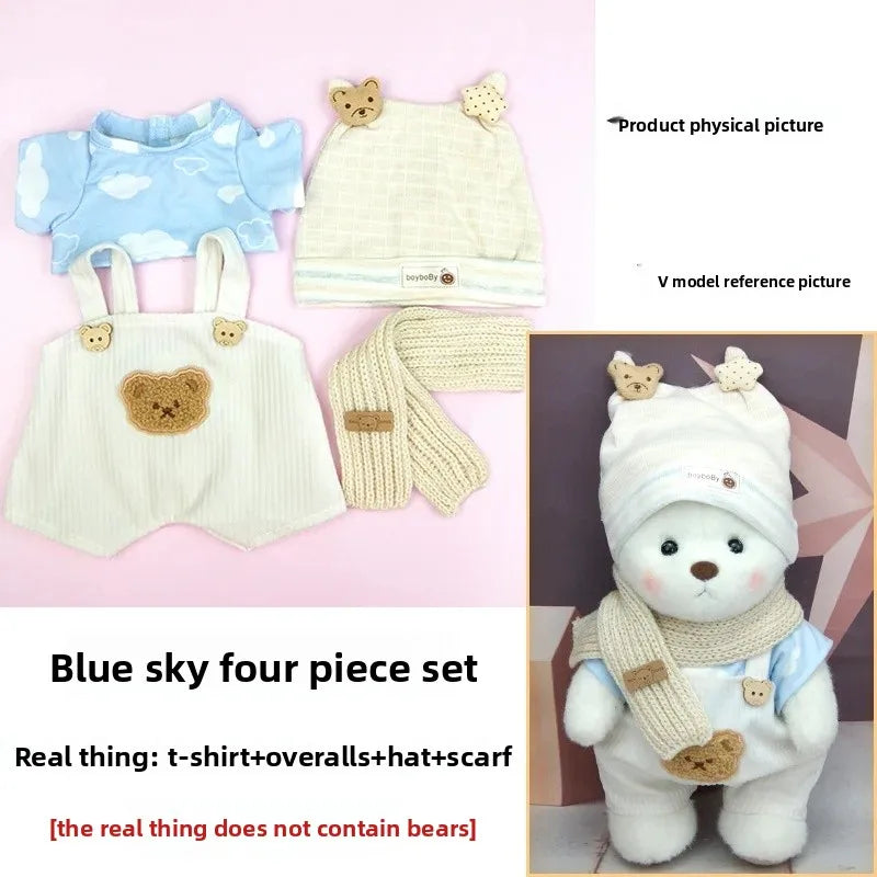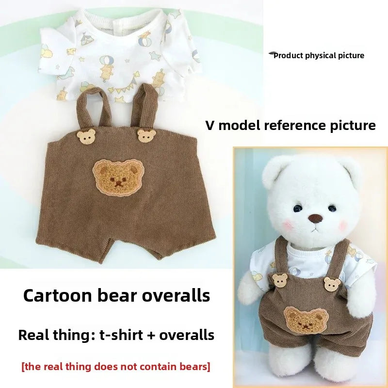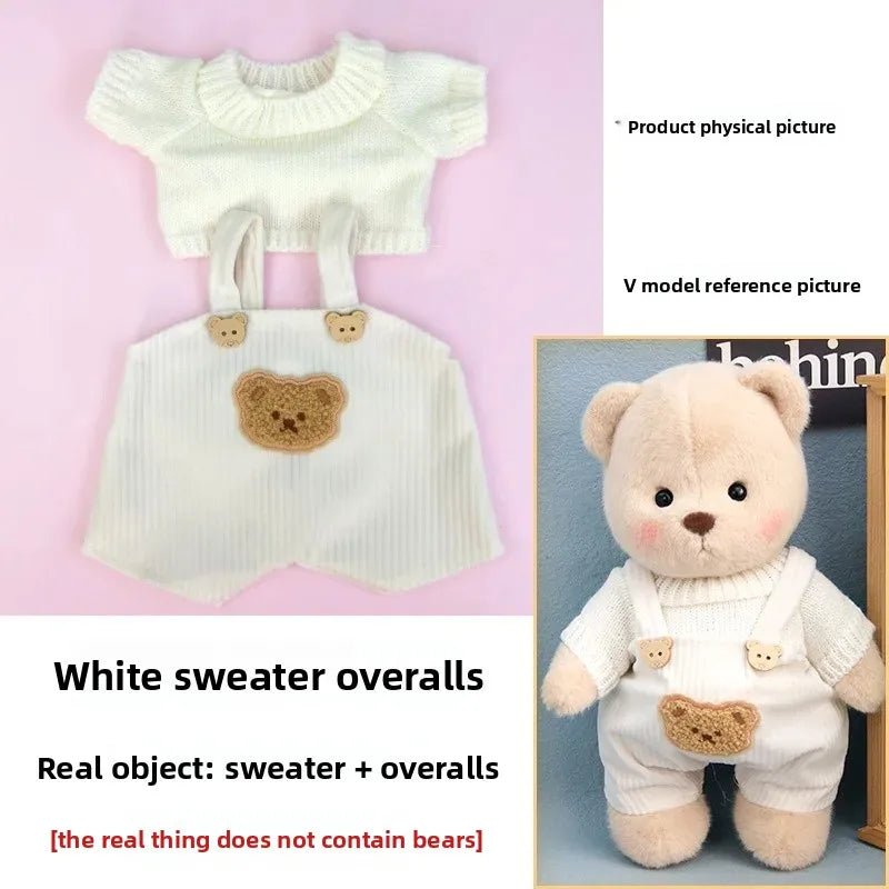 Farbauswahl: Weisser Pullover mit Hosenträgern [ohne Bär], Blau Himmel vierteiliges Set [Bär nicht enthalten], Blau Himmel Hosenträgerhosen [ohne Bär], Hellgrünes Weste-Set [Bär nicht enthalten], Dünnes T-Shirt mit Hosenträgern [Bär-frei], Weisses Hemd mit Latzhose [Bär-frei], Schwarzer Anzug [Bär nicht enthalten], Cartoon-Bären-Latzhose [ohne Bär], Braunes T-Shirt mit Hosenträgern [Bär nicht enthalten], Schwarzes Karokleid [Bär nicht enthalten]