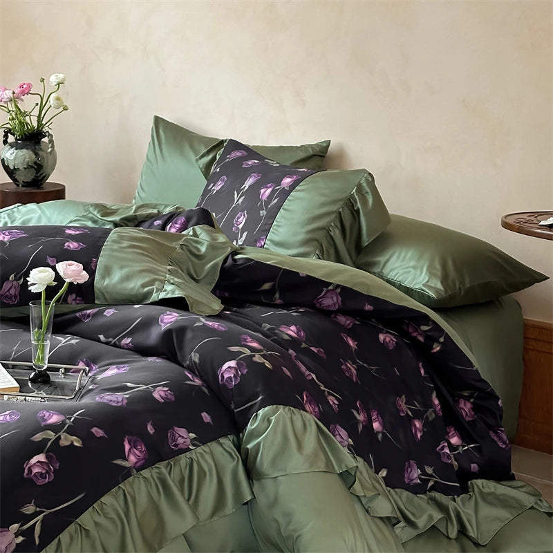 Geniessen Sie den luxuriösen Komfort unseres Bettwäsche-Sets aus ägyptischer Baumwolle, das mit seinem Vintage-Blumen-Charme die Ästhetik Ihres Schlafzimmers hebt.