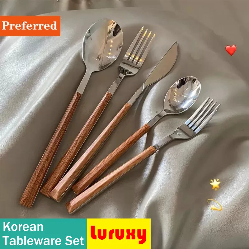 Erleben Sie Essens-Eleganz mit unserem umweltfreundlichen koreanischen Edelstahl-Besteckset, das für Stil und Nachhaltigkeit entwickelt wurde.