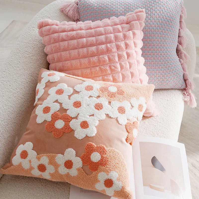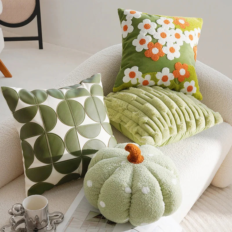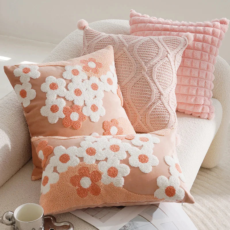 Erhöhen Sie Ihre Dekoration mit diesen eleganten bestickten Kissenbezügen, die Ihrem Raum einen luxuriösen floralen Touch verleihen.