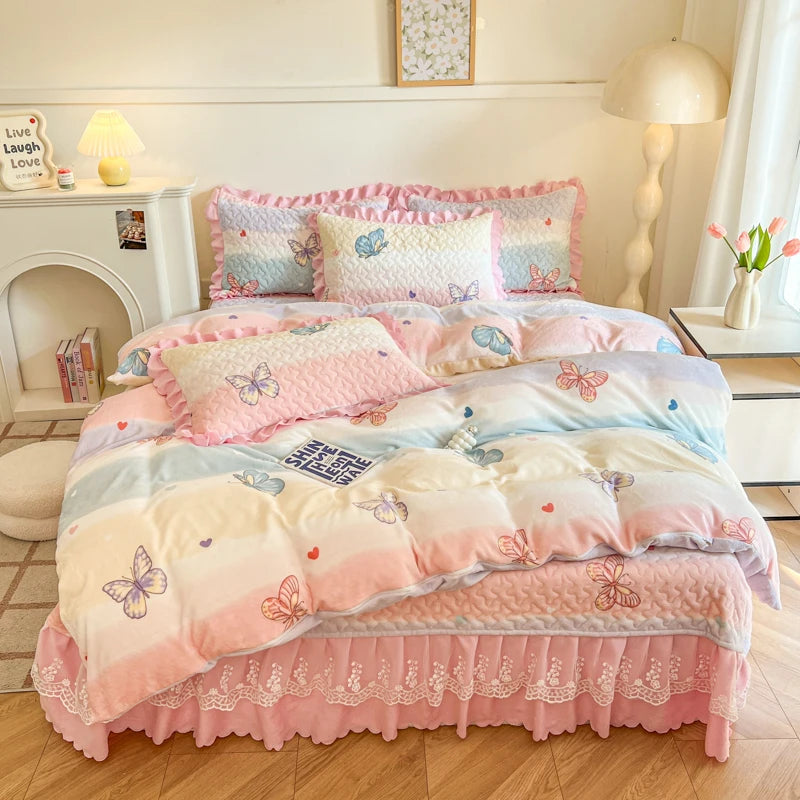 Veredeln Sie Ihre Schlafzimmerdekoration mit unserem Milchsamt-Bettbezug, bekannt für seine aussergewöhnliche Weichheit und sein verspieltes Design.