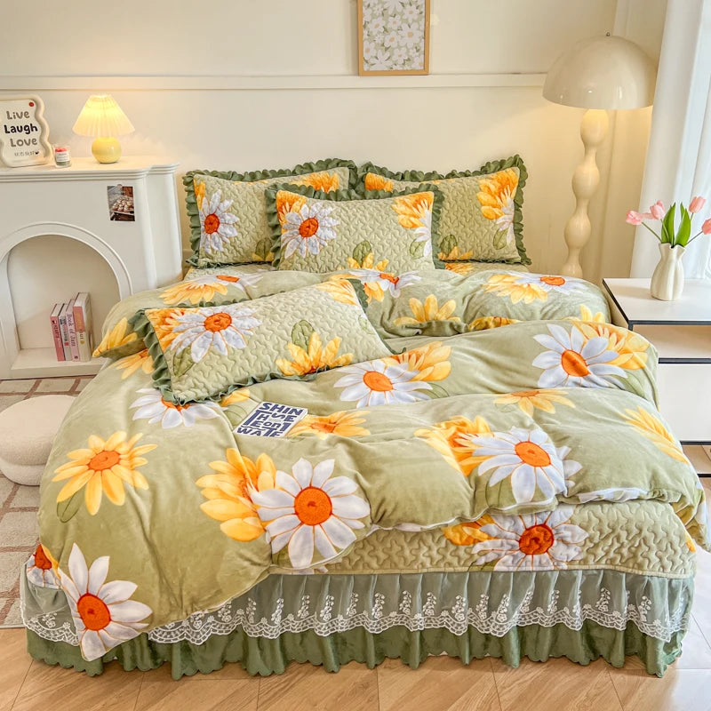 Versinken Sie in der luxuriösen Weichheit unseres Milchsamts-Bettbezugs, der entworfen wurde, um einen Hauch von Stil und Komfort in Ihr Schlafzimmer zu bringen.