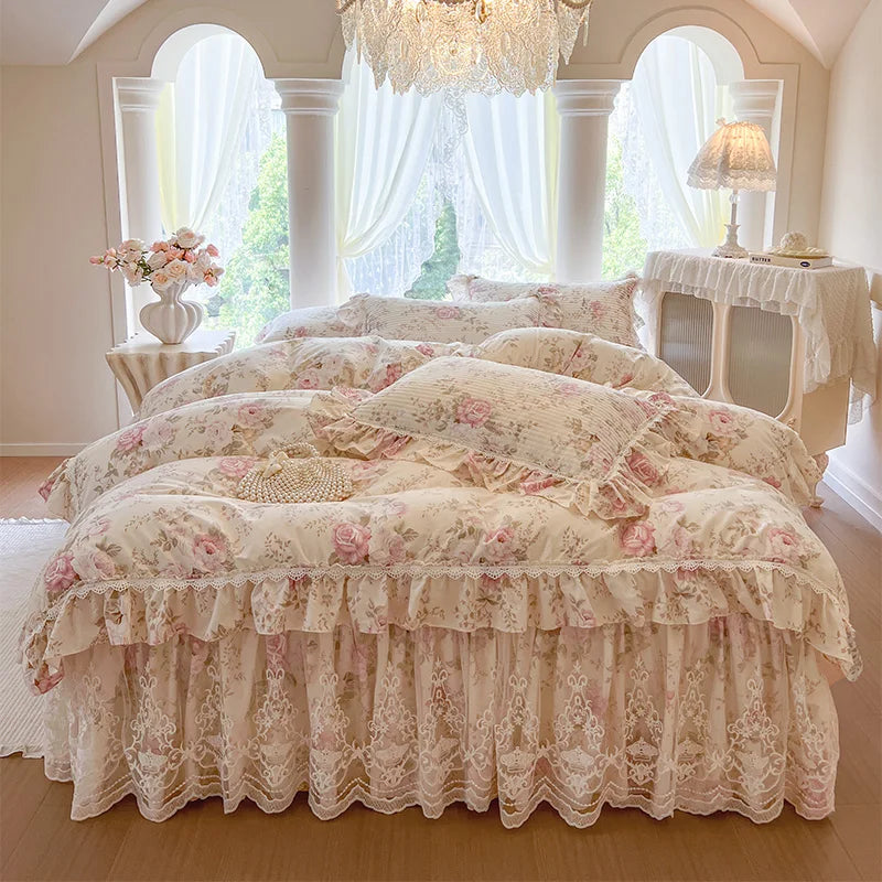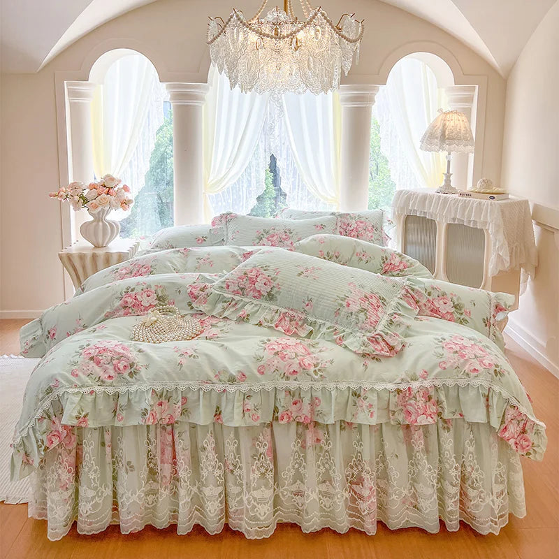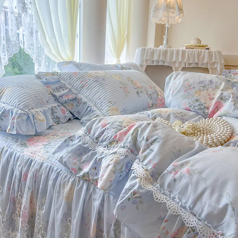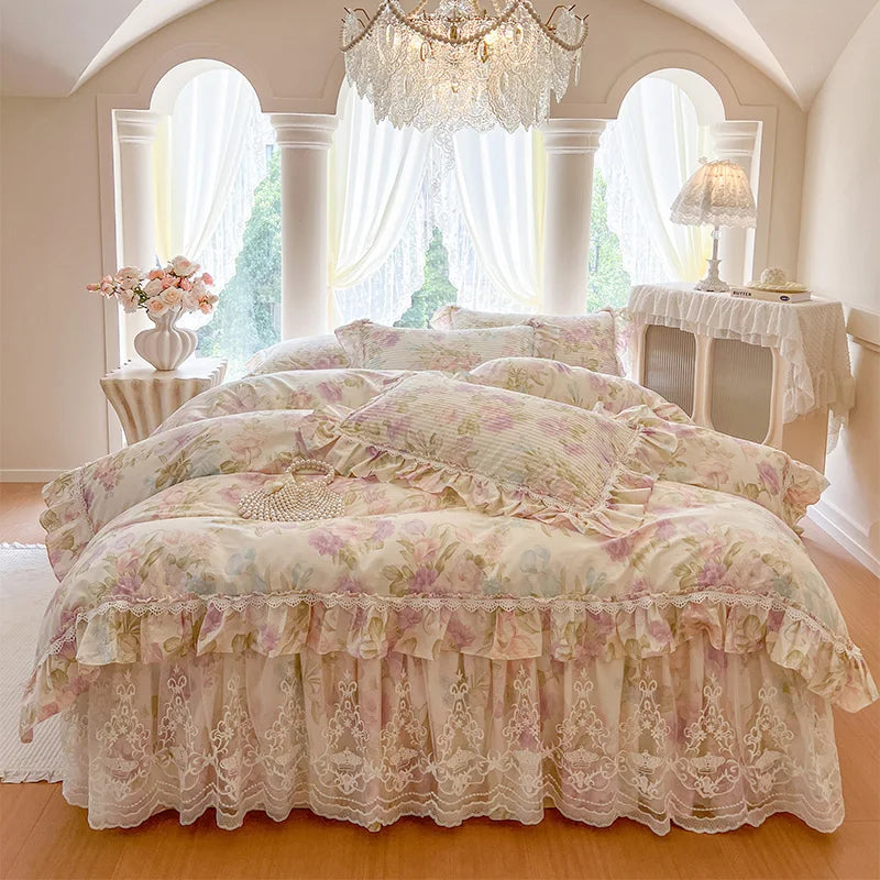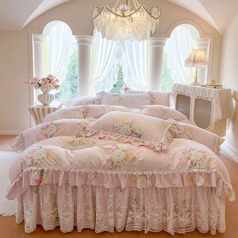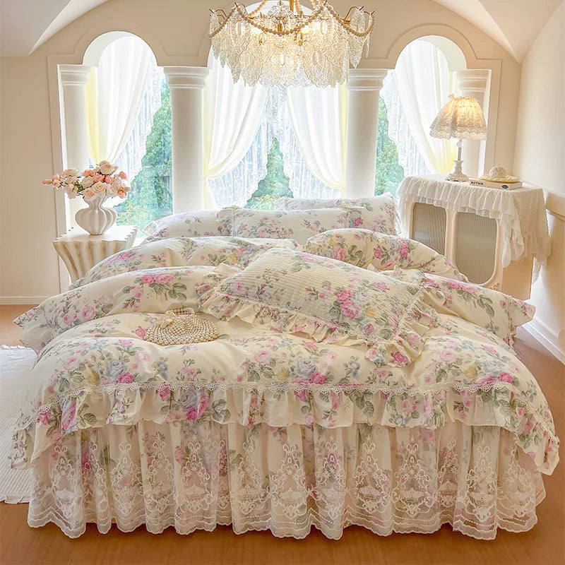 Tauchen Sie ein in Luxus mit diesem Bettwäsche-Set im koreanischen Prinzessinnenstil, das für ultimativen Komfort und Stil gefertigt wurde.
