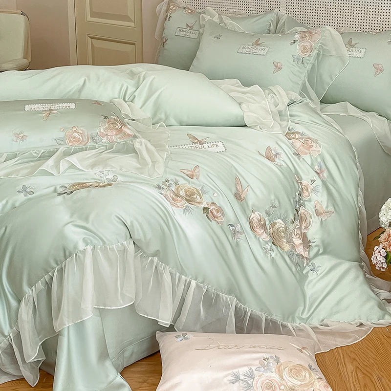 Gönne dir die raffinierte Eleganz unseres bestickten Bettbezugssets aus weichem und seidigem Lyocell-Baumwolle, das deinen Schlafbereich in eine friedliche Oase verwandelt.
