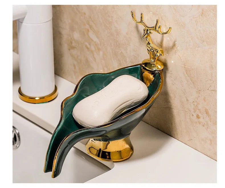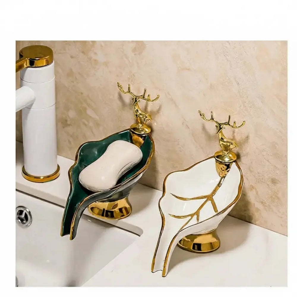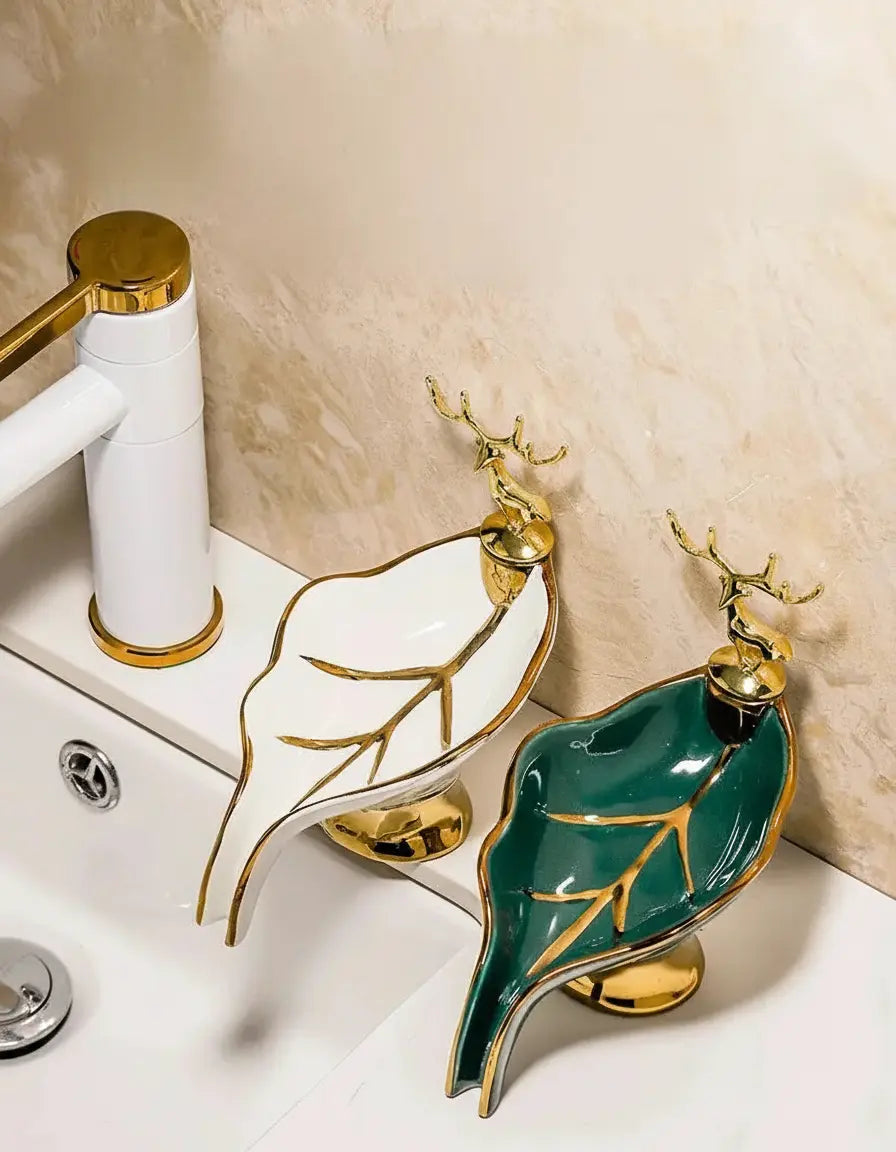 Merkmal 1: Seifenschale in Blattform mit Hirschdekoration