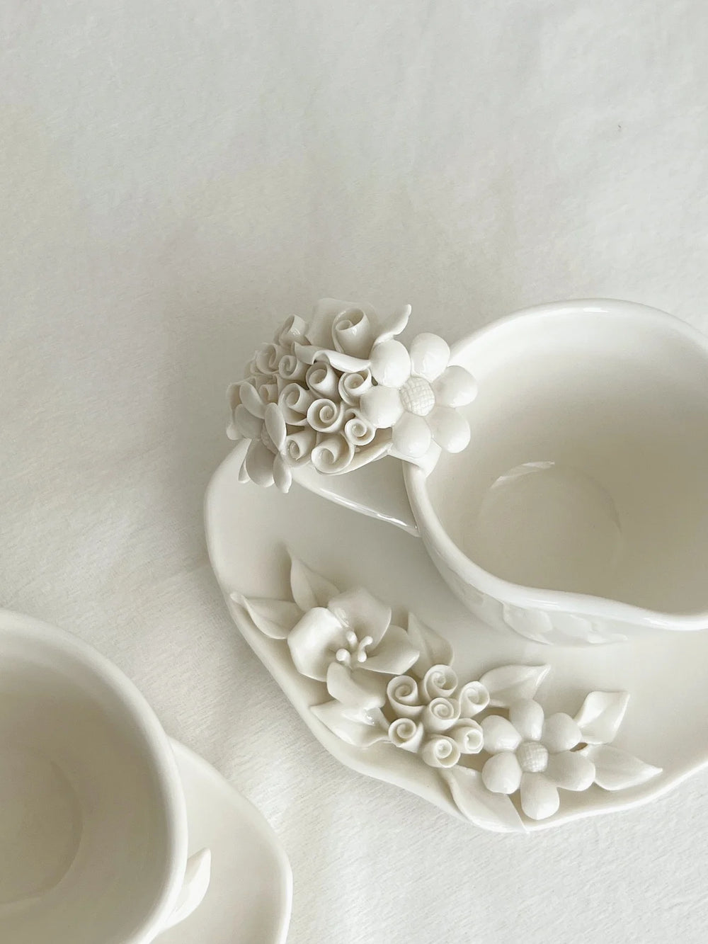 Erleben Sie die Eleganz des europäischen Stils mit dieser exquisiten Blumentassengarnitur, die perfekt für besondere Kaffeegenussmomente entworfen wurde. Eine Mischung aus Kreativität und Funktion, ideal um jedes Ambiente zu bereichern.