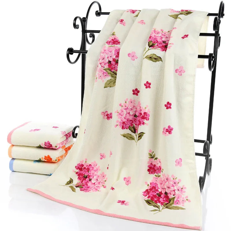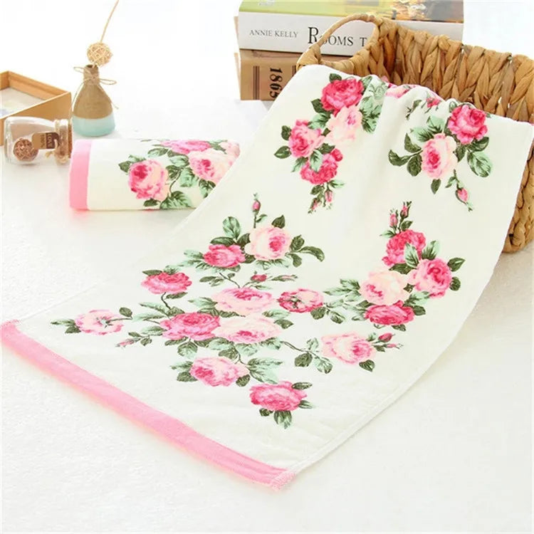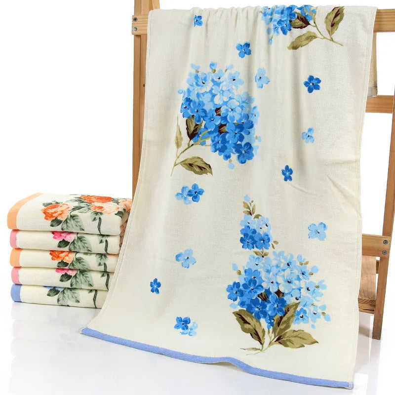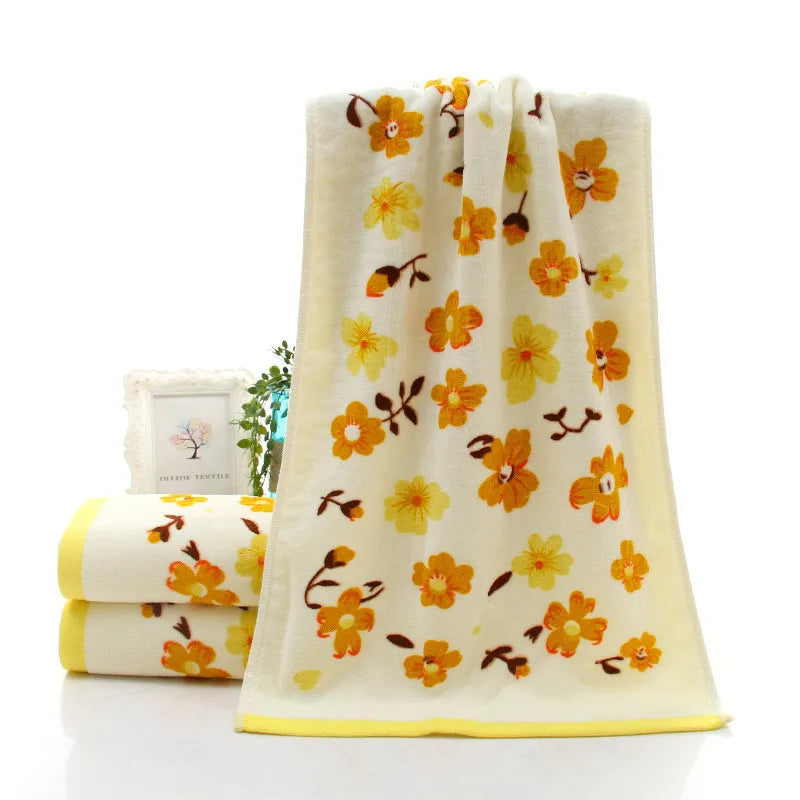 Geniessen Sie die Weichheit und Eleganz unseres Blumentuchs aus Baumwolle, perfekt, um Ihrem Badezimmerdekor einen Hauch von Natur zu verleihen.