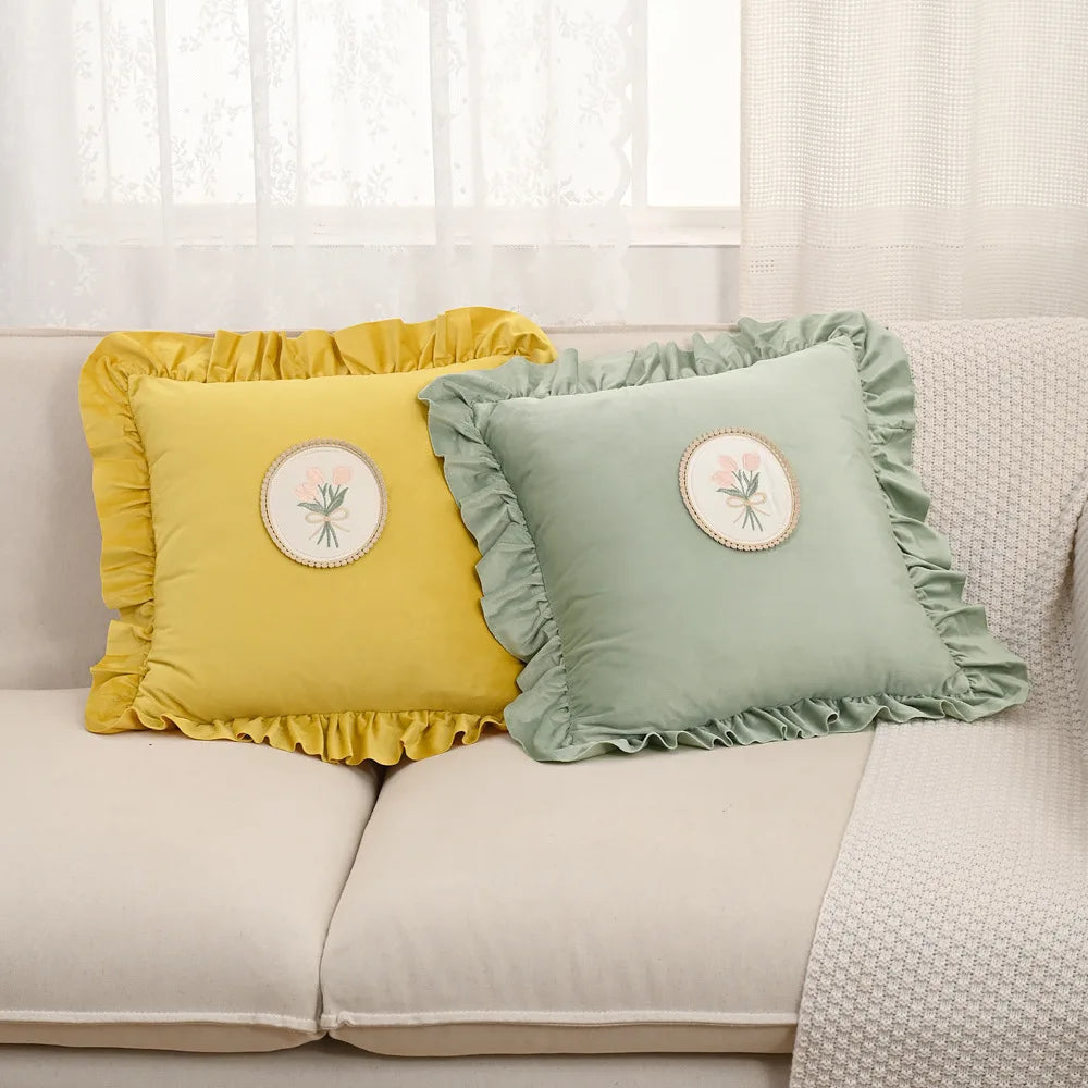 Diese Vintage-Tulpen-Kissenbezüge verleihen Ihrem Wohnzimmer oder Schlafzimmer einen charmanten bohemian Touch und bieten ein behagliches Ambiente zur Entspannung.