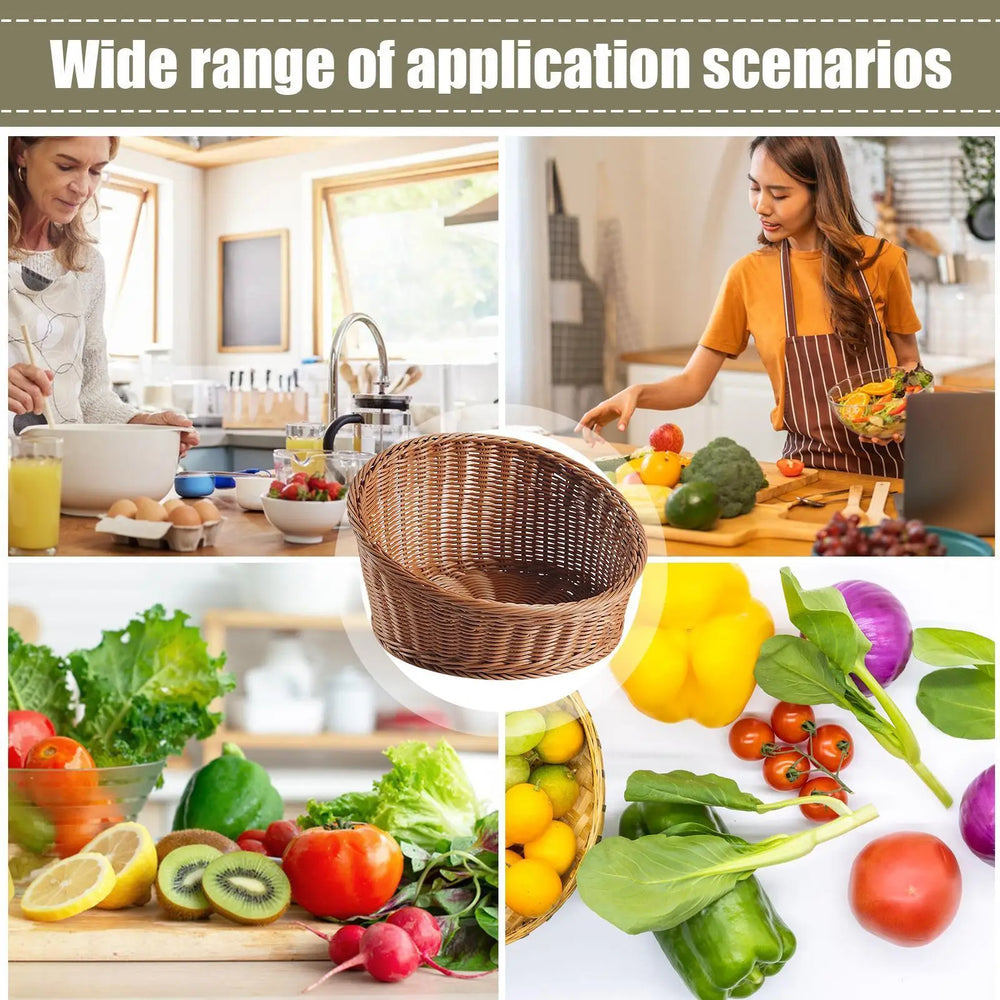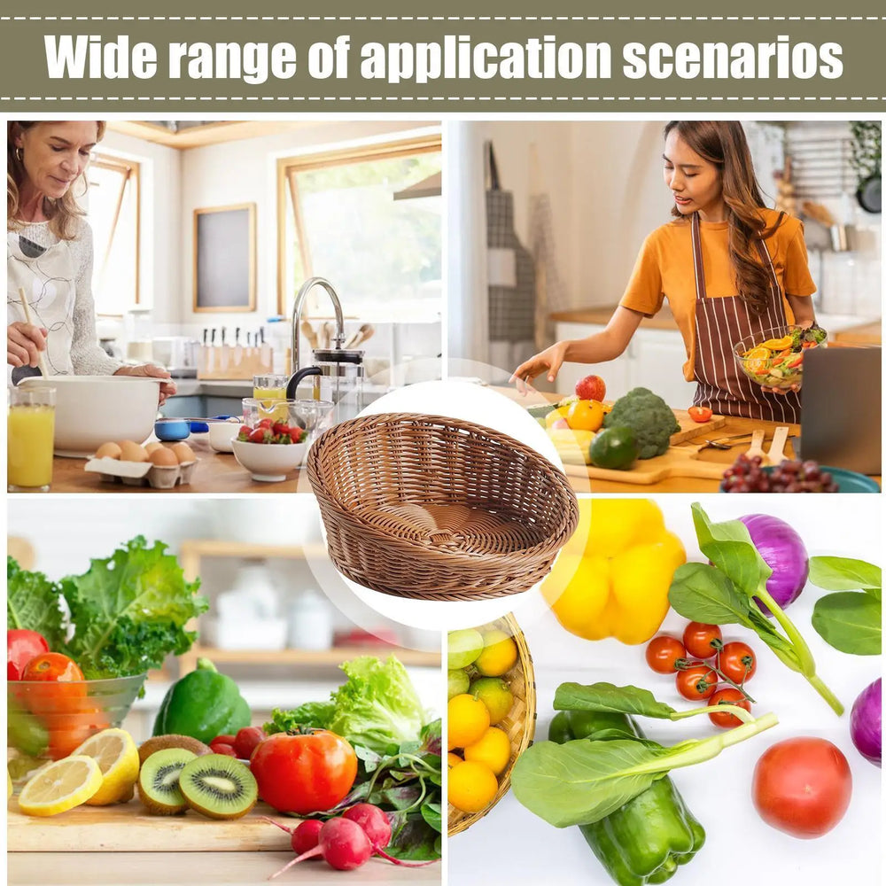 Der Brotkorb aus strapazierfähigem Imitationsrattan vereint rustikalen Charme mit modernem Design und eignet sich perfekt zur Organisation und Präsentation verschiedenster Lebensmittel.