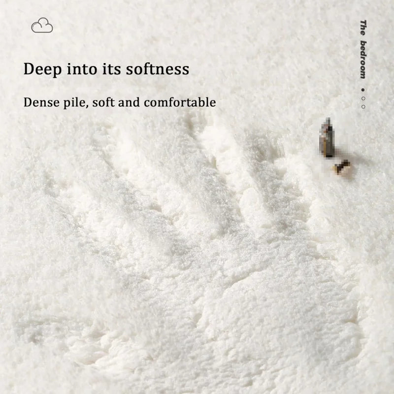 Der Teppich besteht aus hochwertigem Imitat-Kaschmir und Polyester, was eine weiche Haptik und Haltbarkeit bietet.