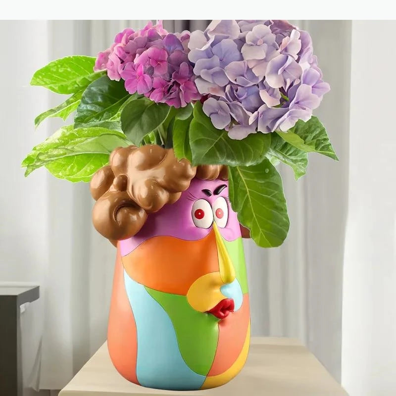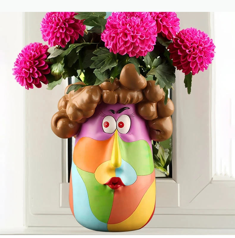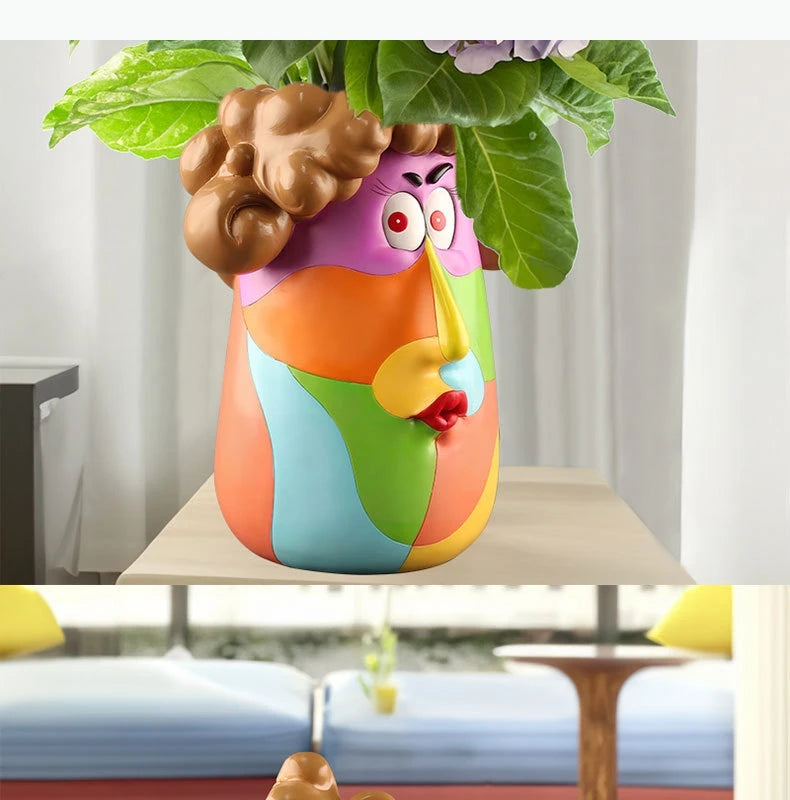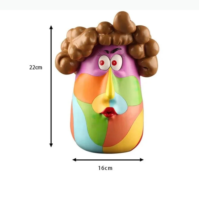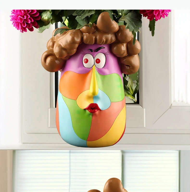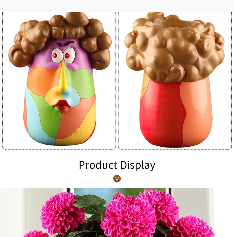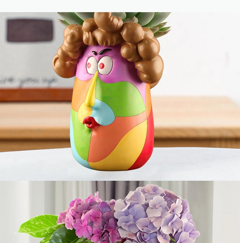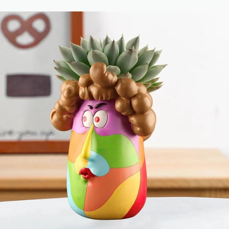 Dieser Cartoon-Harz-Blumentopf besticht durch sein charmantes Design einer lockigen Mädchenfigur, die jedem Raum Charakter verleiht.