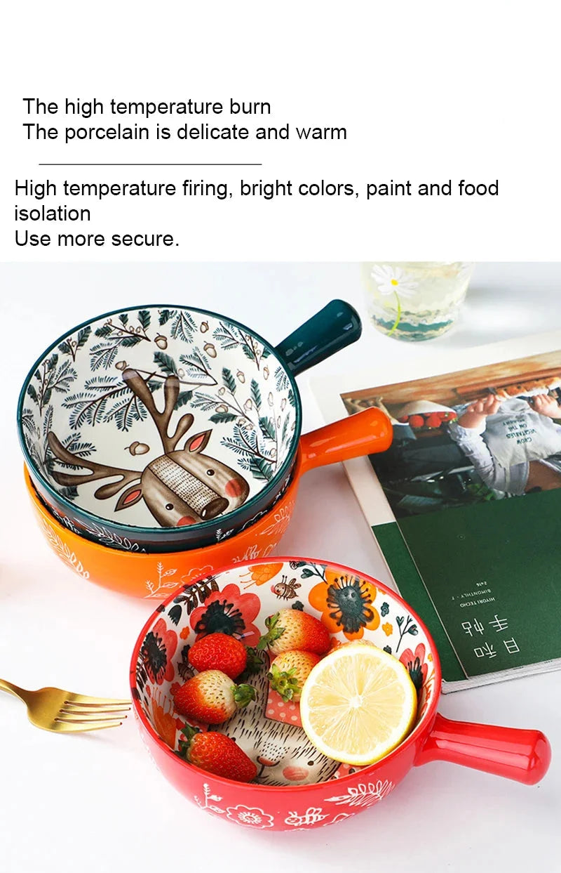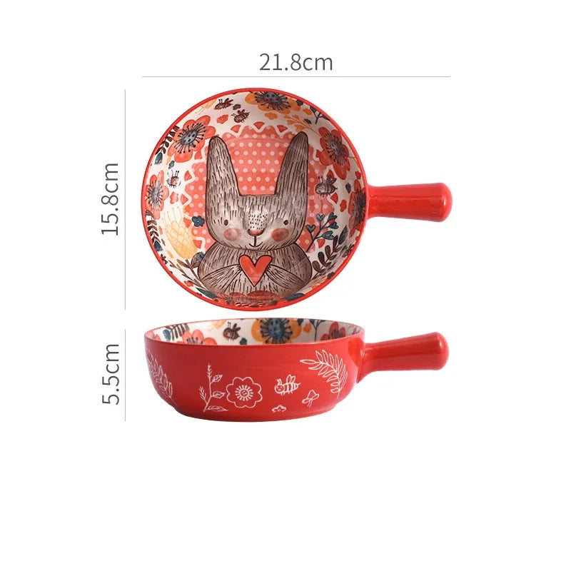 Dieses bezaubernde Stück ist darauf ausgelegt, jede Tischdekoration zu ergänzen, und erhebt gewöhnliche Mahlzeiten mit seinem verspielten Stil. Es ist nicht nur eine Schale; es ist ein Gesprächsstoff bei Zusammenkünften. Aus umweltfreundlicher Keramik gefertigt, ist es mikrowellengeeignet und leicht in der Spülmaschine zu reinigen, was Langlebigkeit und Bequemlichkeit verspricht. Der Griff der Schale fügt einen praktischen Touch hinzu und erleichtert das Servieren heisser Gerichte direkt aus der Mikrowelle oder dem Ofen.