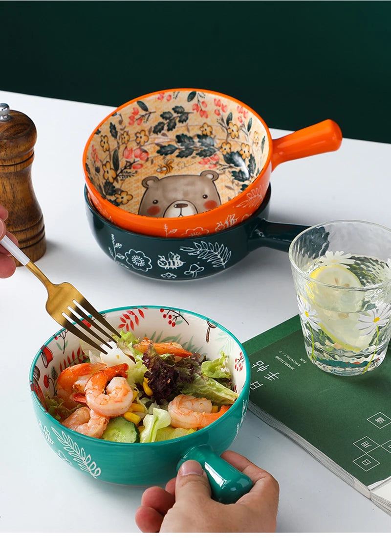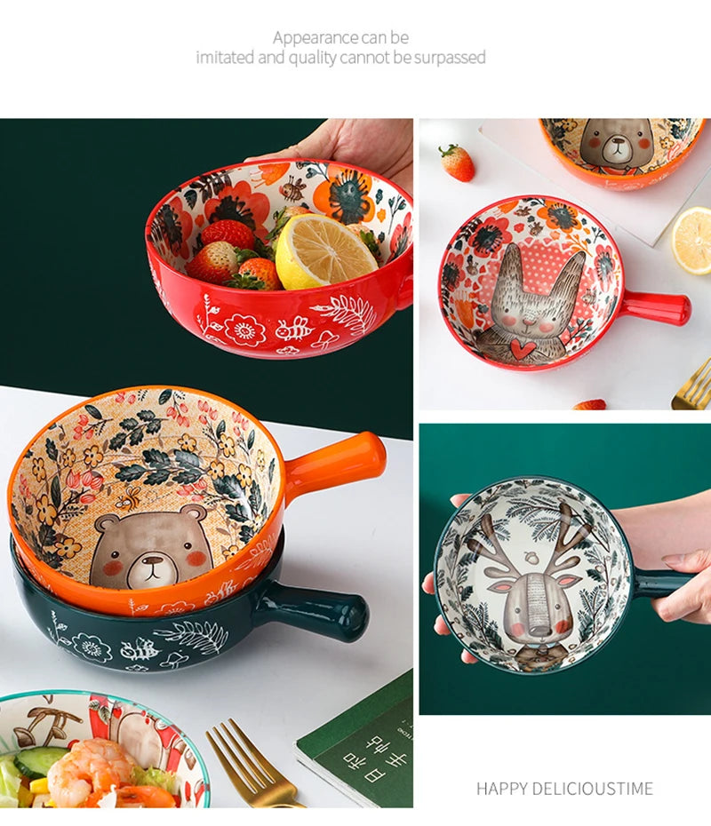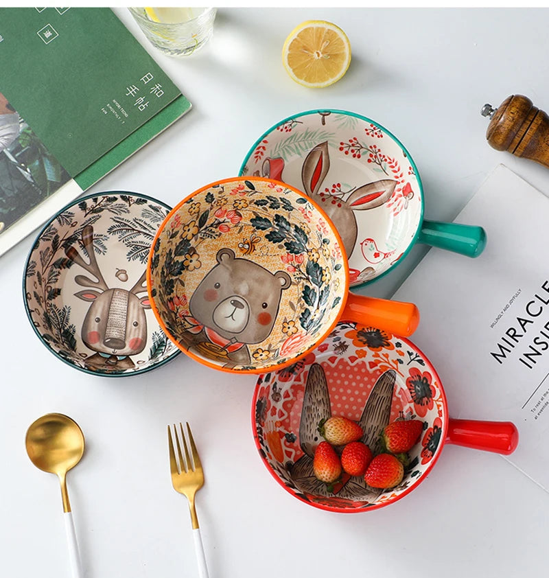 Unsere Keramikschale mit charmanten Cartoon-Designs bringt garantiert Spass und Kreativität in Ihr Esserlebnis, sei es ein gemütliches Abendessen oder ein festliches Treffen.