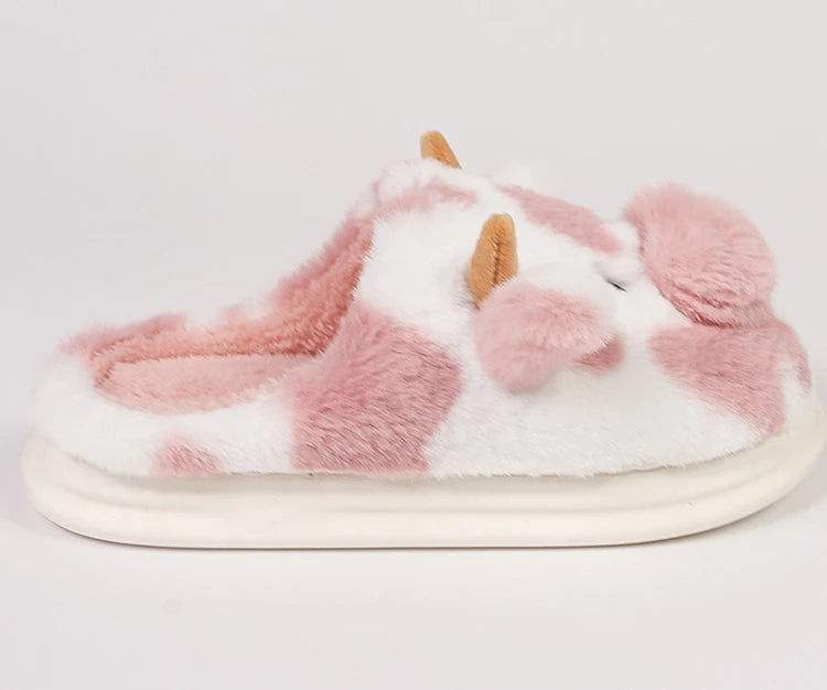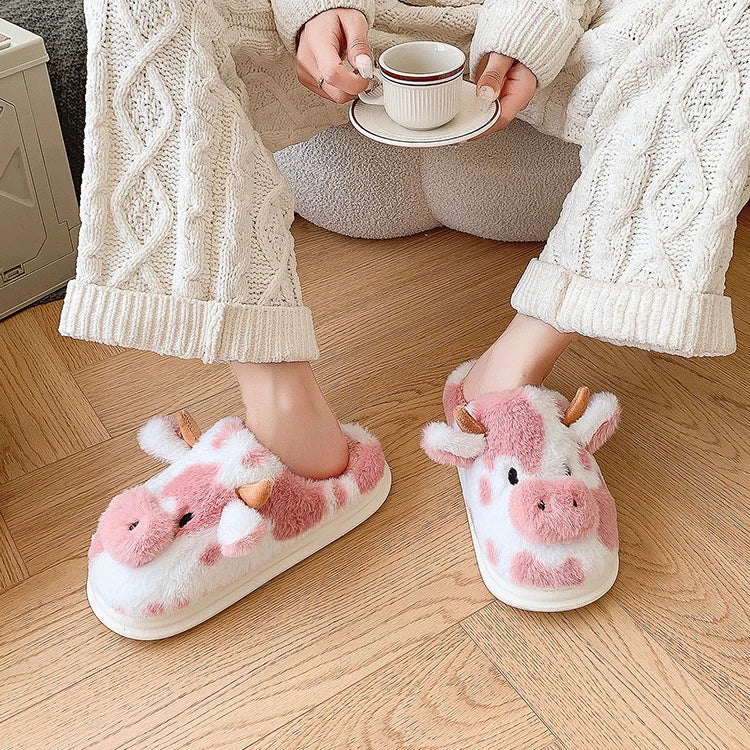 Erleben Sie die gemütliche Umarmung dieser Cartoon-Kuh-Pantoffeln, die entworfen wurden, um Ihrer Wintergarderobe einen verspielten Touch zu verleihen.