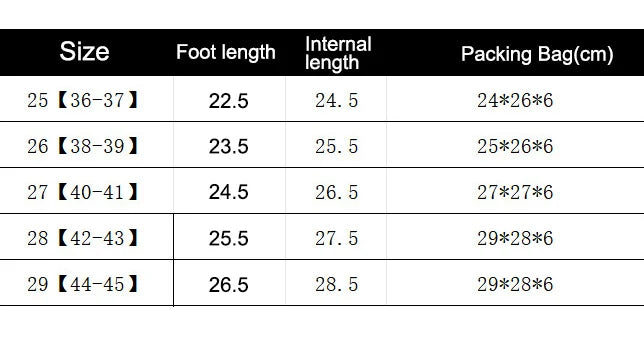 Grösseninformation: 36-37: EU 35, BR 33.5, JP 22, UK 2.5, KR 225, MX 22.5, US 5 (Länge: 22.5 cm), 38-39: EU 36, BR 35, JP 23, UK 3.5, KR 235, MX 23.5, US 6 (Länge: 23.5 cm), 40-41: EU 38, BR 36.5, JP 24, UK 5, KR 245, MX 24.5, US 7 (Länge: 24.5 cm), 42-43: EU 40, BR 38, JP 25, UK 6, KR 255, MX 25.5, US 8 (Länge: 25.5 cm), 44-45: EU 41, BR 40, JP 26, UK 7, KR 265, MX 26.5, US 9.5 (Länge: 26.5 cm)