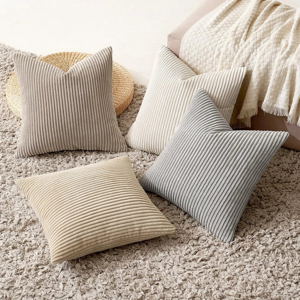 Erleben Sie den Charme des skandinavischen Designs mit unserem Cord-Kissenbezug, perfekt um jedem Raum Eleganz zu verleihen.