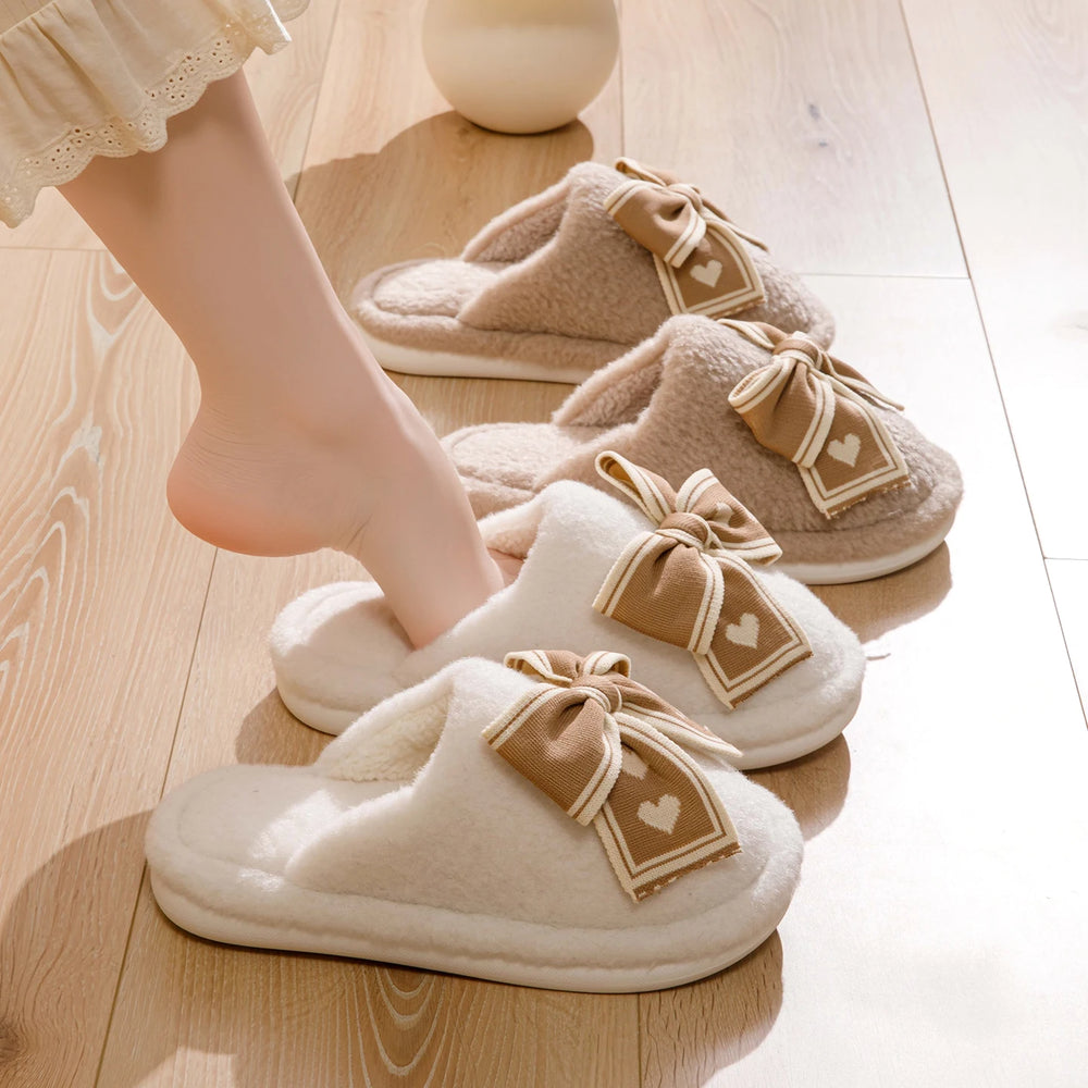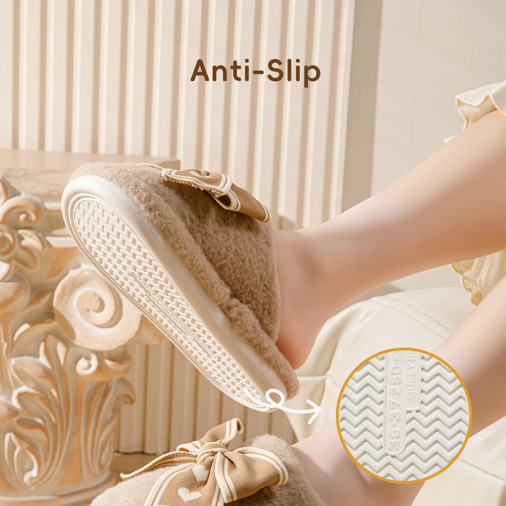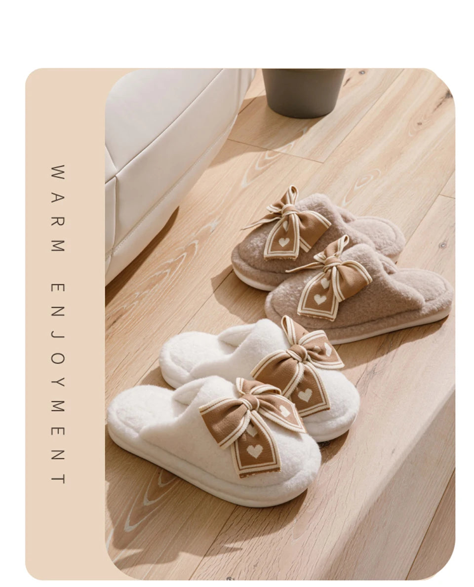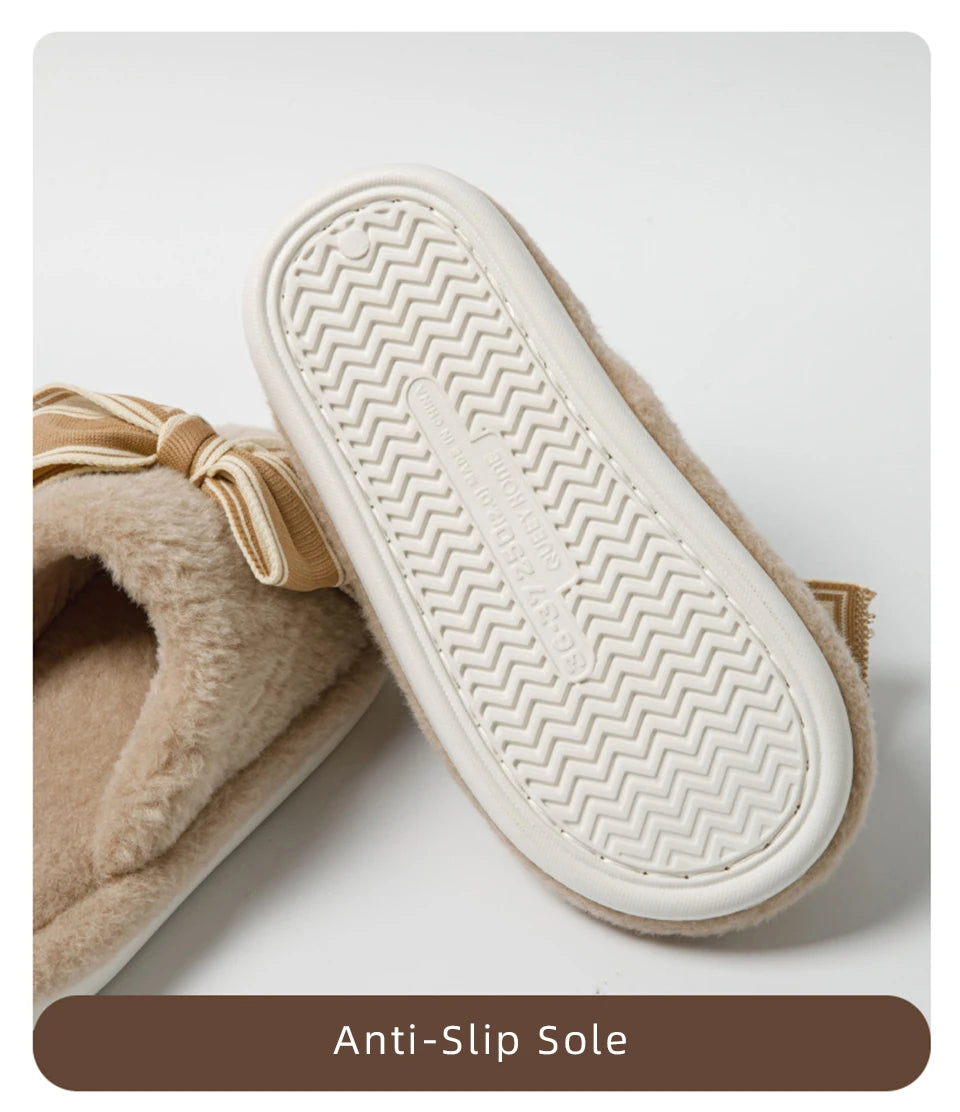 Erleben Sie unvergleichliche Wärme und Stil mit unseren Damen Bow Plüsch Baumwoll Hausschuhen. Perfekt für entspannte Stunden zu Hause an kalten Winternächten.