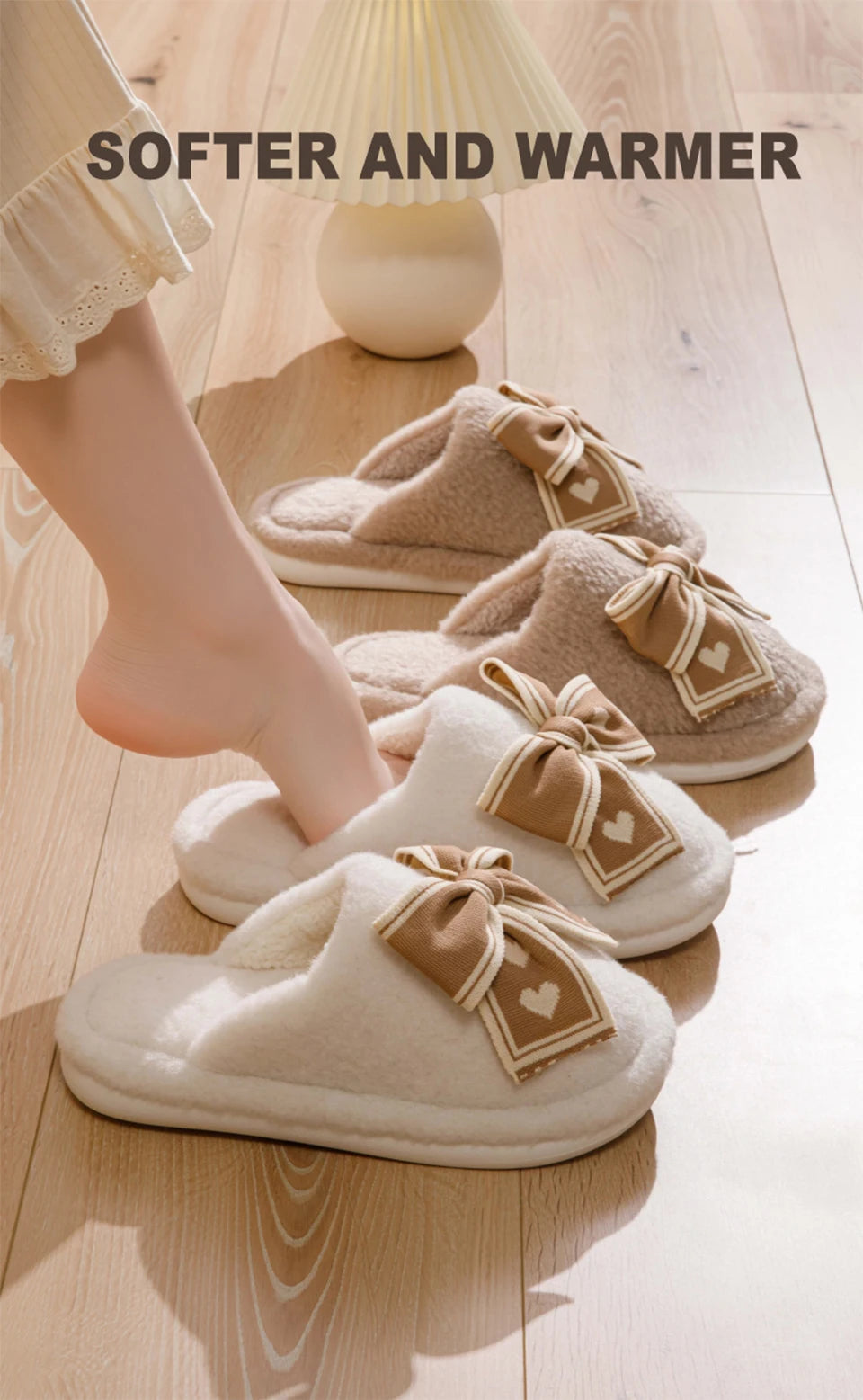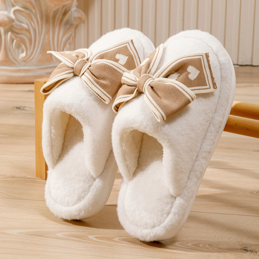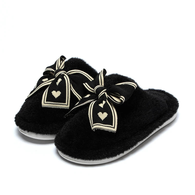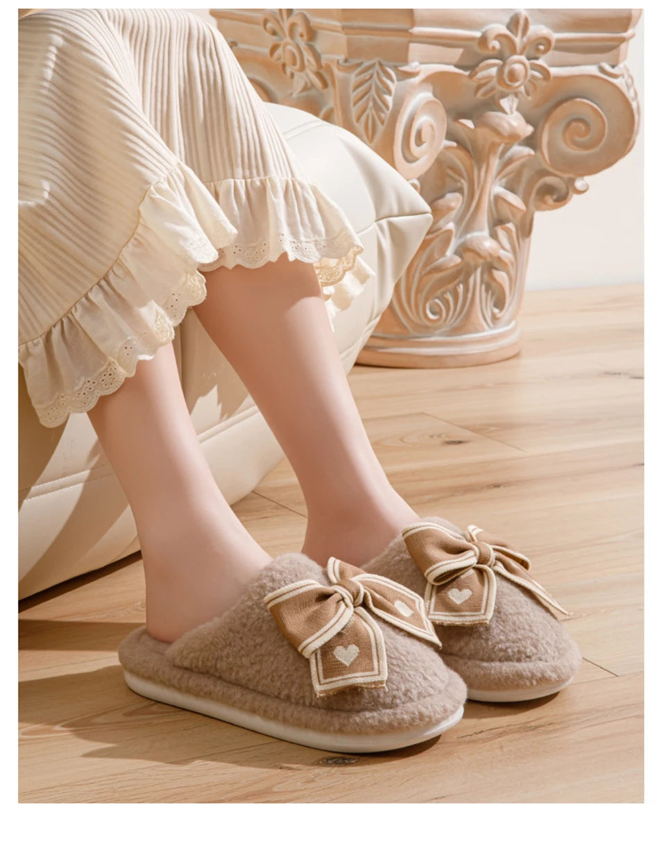 Erleben Sie unvergleichliche Wärme und Stil mit unseren Damen Bow Plüsch Baumwoll Hausschuhen. Perfekt für entspannte Stunden zu Hause an kalten Winternächten.