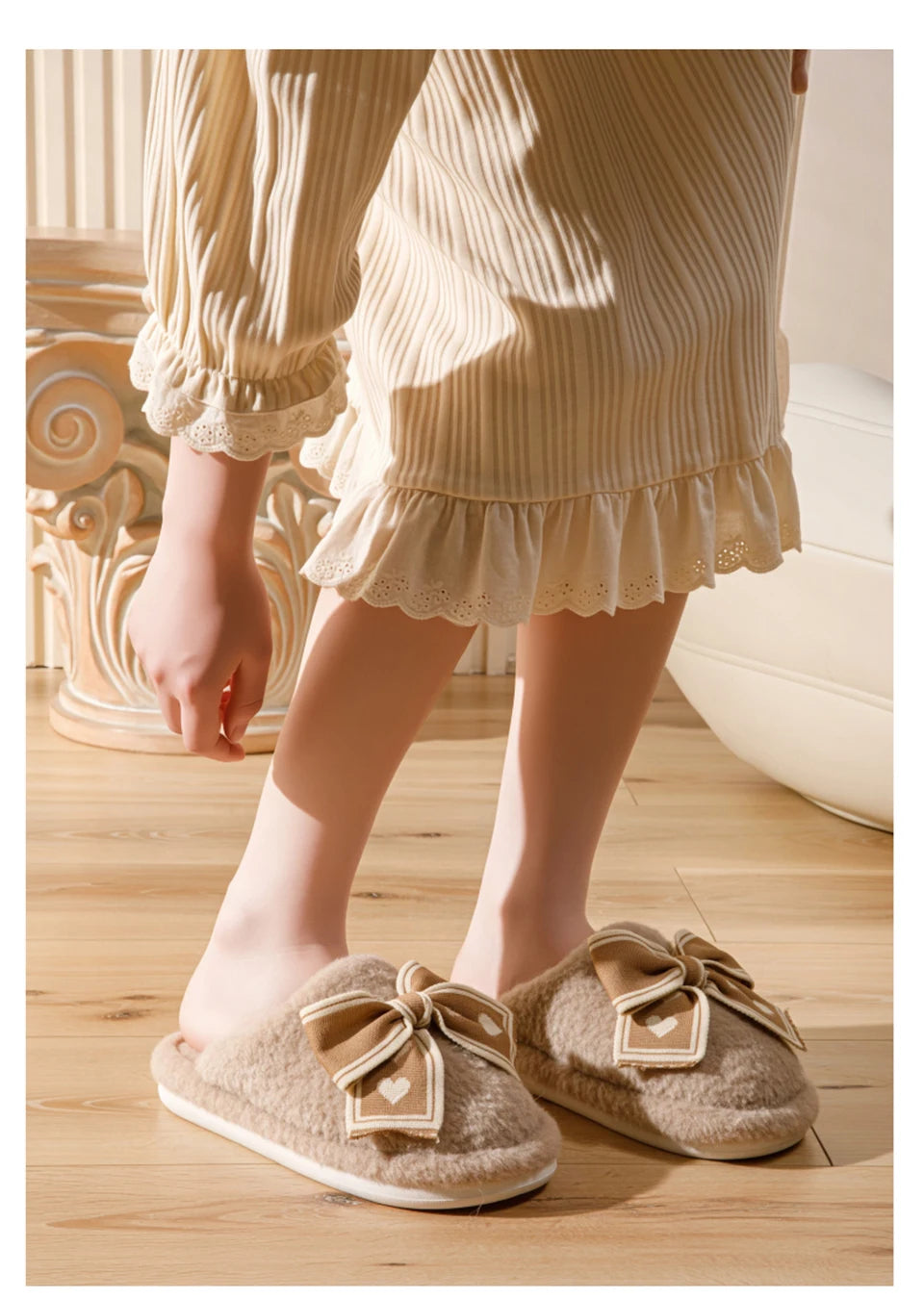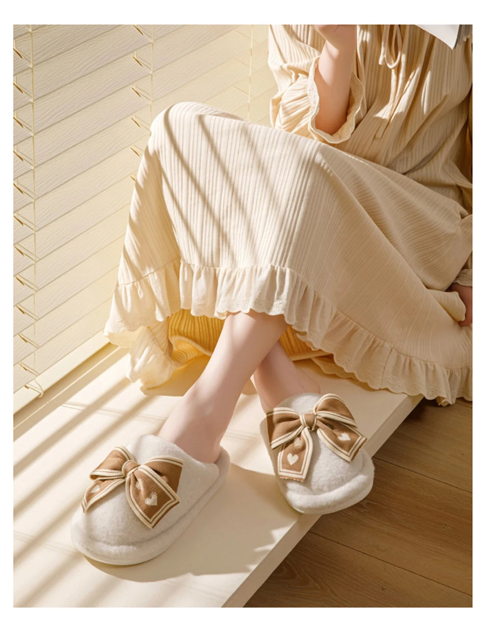 Unsere Hausschuhe bieten ein schickes Design mit modischem Schmetterlingsknoten, flachem Absatz und umweltfreundlichen Materialien, um Stil und Nachhaltigkeit zu vereinen. Verpassen Sie nicht das ultimative Komforterlebnis dieses Winters.