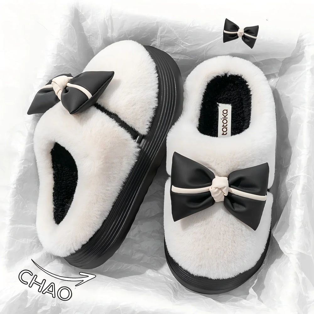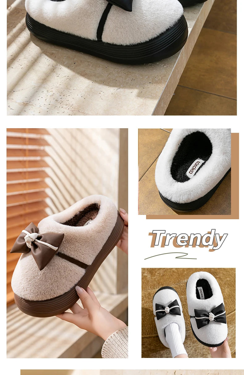 Verwandeln Sie Ihr Zuhause in ein Paradies mit unseren Damen Baumwollhausschuhen, die mit einem charmanten Schleifenknoten-Design und einer flauschigen Fleecefütterung ausgestattet sind. Perfekt für gemütliche Winternächte!