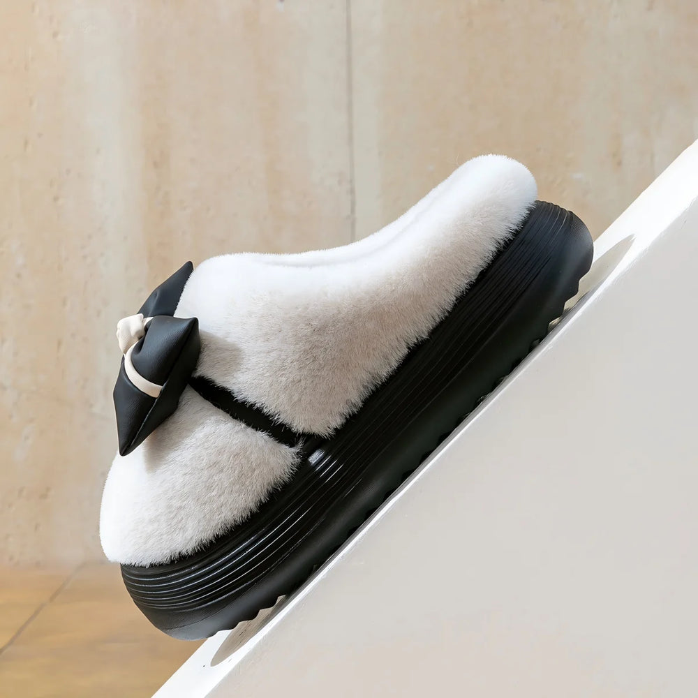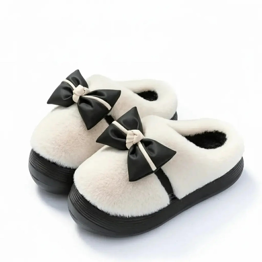 Fügen Sie Ihrem Zuhause Wärme und Stil hinzu mit unseren Damen Baumwollhausschuhen, die mit einem charmanten Schleifenknoten-Design und flauschiger Fleece-Fütterung versehen sind.