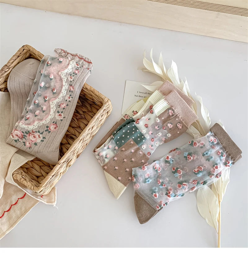 Lassen Sie sich von der schicken Retro-Stimmung mit unseren transparenten Blumensocken verführen, die Stil und Atmungsaktivität für Ihre Alltagslooks bieten.
