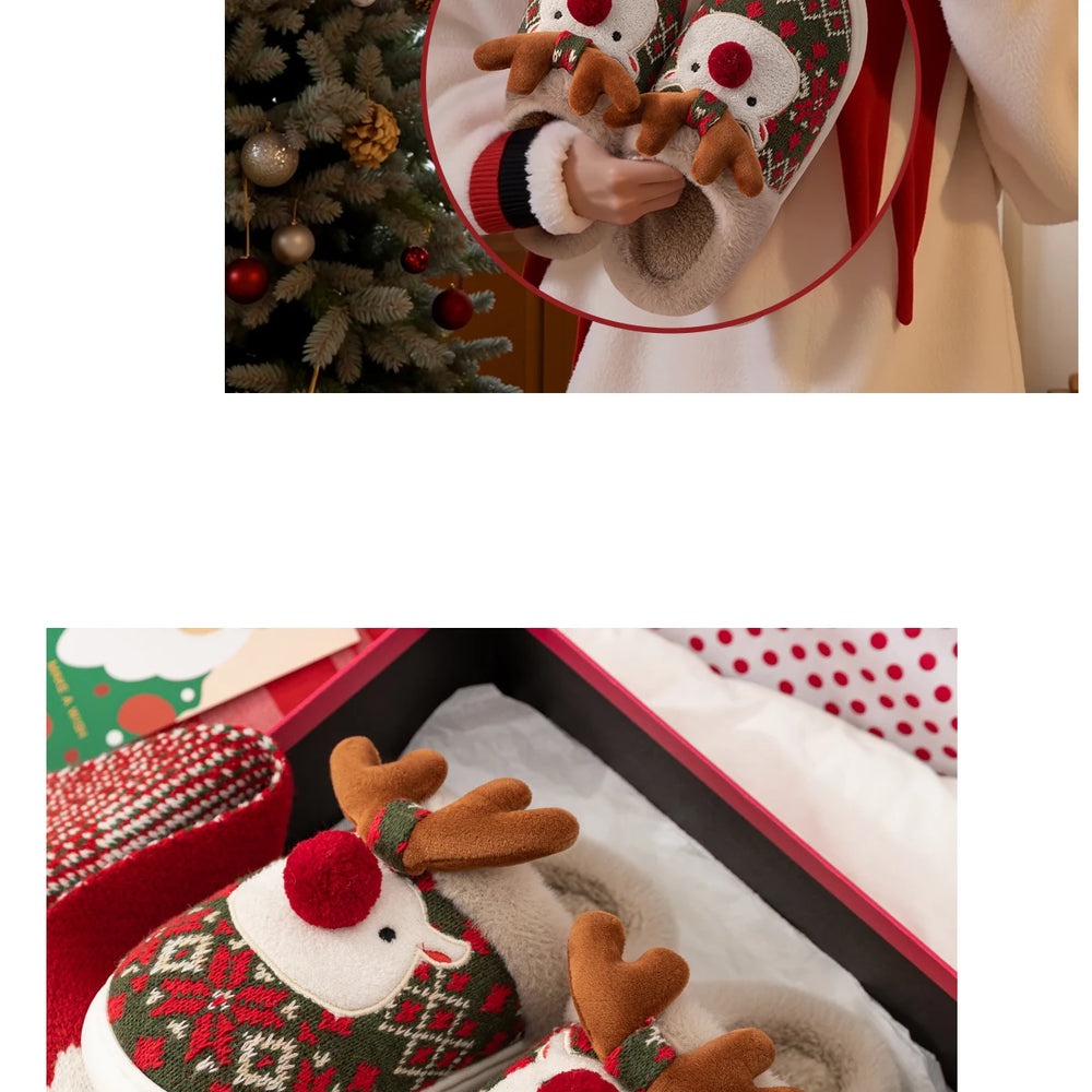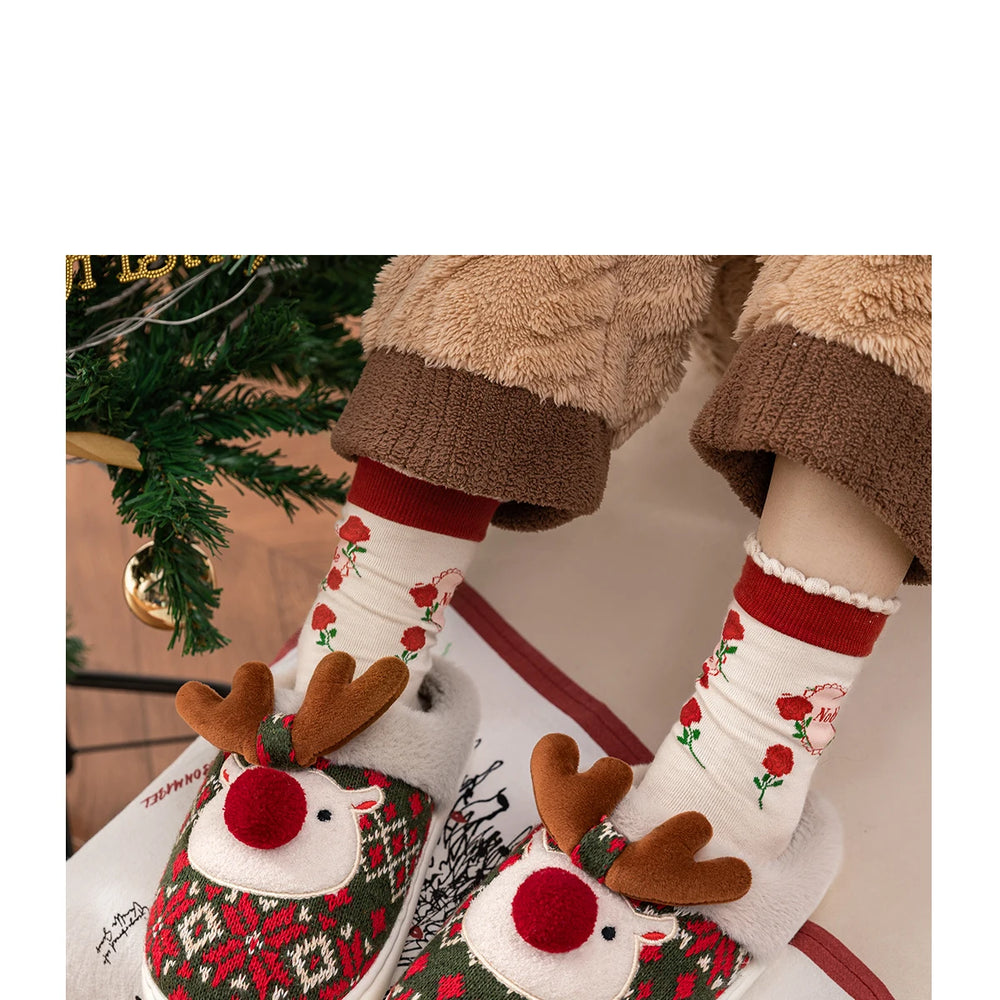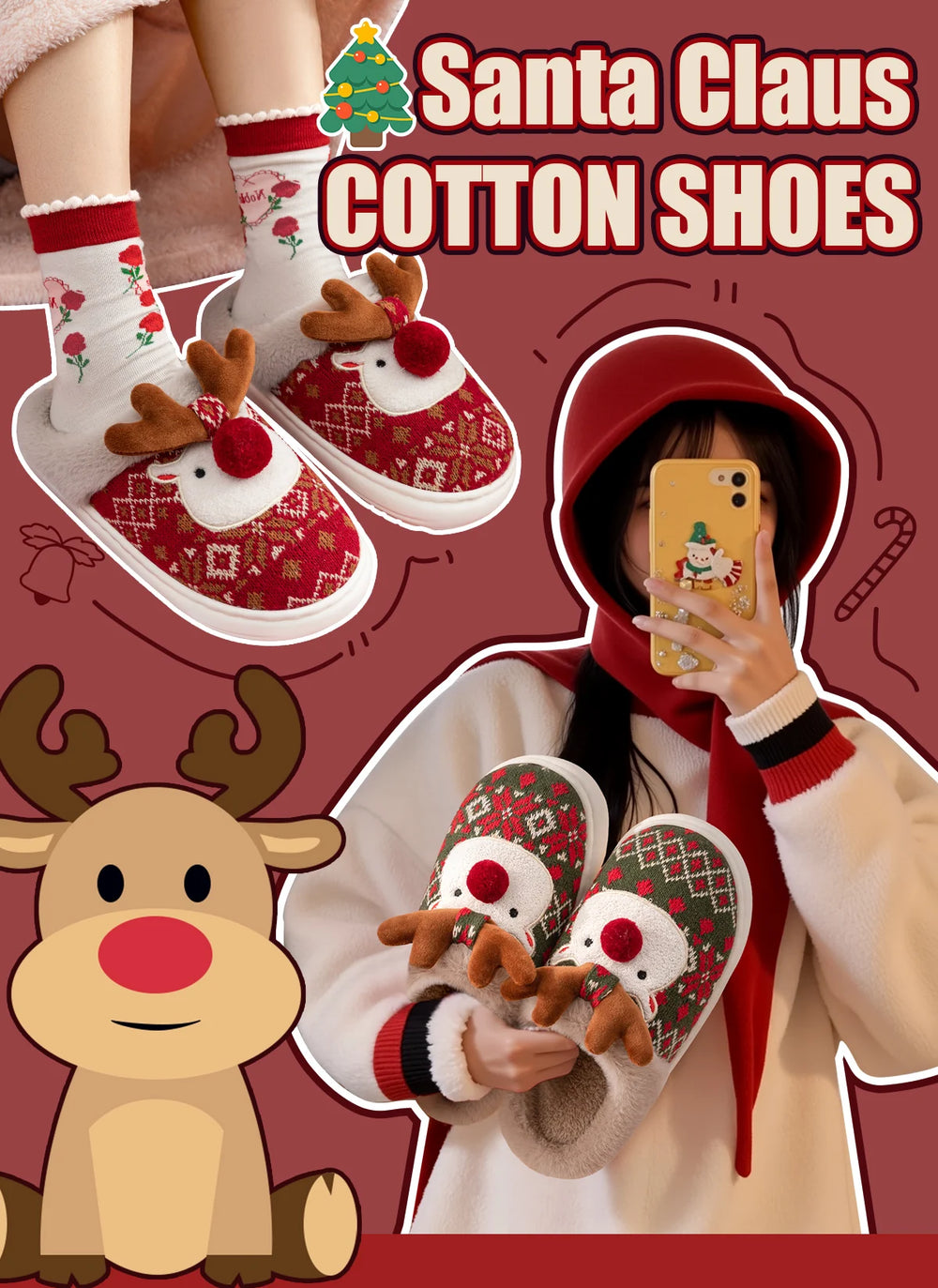 Erleben Sie die Winterwärme mit diesen stilvollen Damenhausschuhen, die für den Innenbereich mit einem charmanten Cartoon-Rentiermuster entworfen wurden.