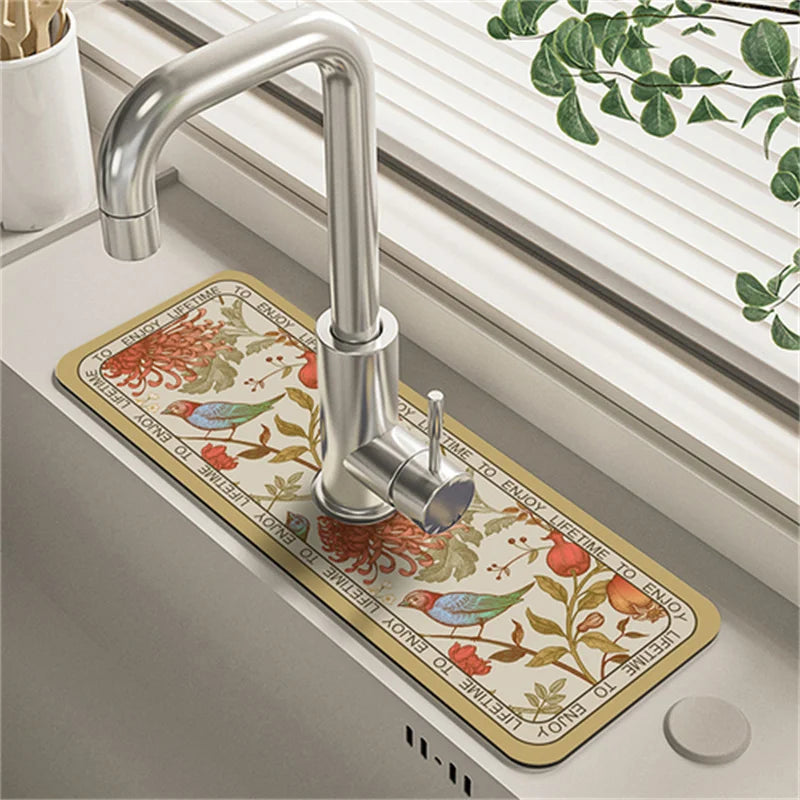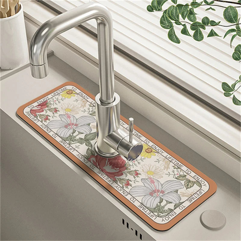 Bringen Sie einen Hauch von Eleganz und Funktionalität in Ihre Küche mit unserem modernen Diatomit-Wasserhahn-Ablaufpolster. Entworfen, um Ihre Arbeitsplatte trocken und stilvoll zu halten, passt es mühelos in jedes moderne Dekor.