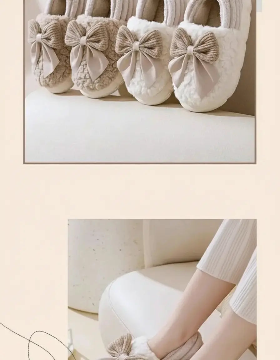 Verwöhnen Sie Ihre Füsse mit unseren schleifenverzierten Pantoffeln, entworfen für intimen Heimkomfort.