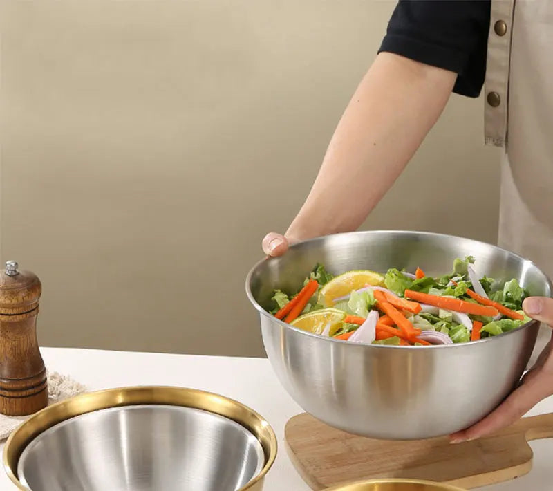 Erleben Sie raffinierte kulinarische Kreationen mit unserer umweltfreundlichen Edelstahl-Rührschüssel. Es ist nicht nur eine Schüssel; es ist ein Statement in Ihrer Küche.