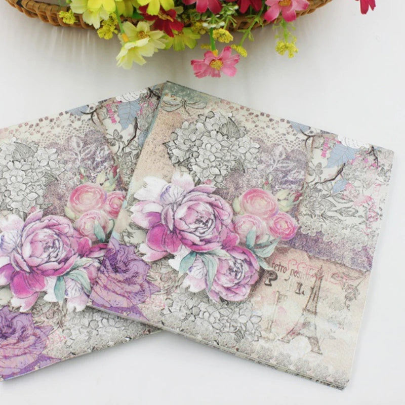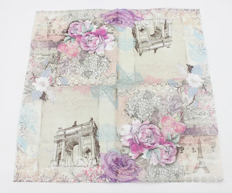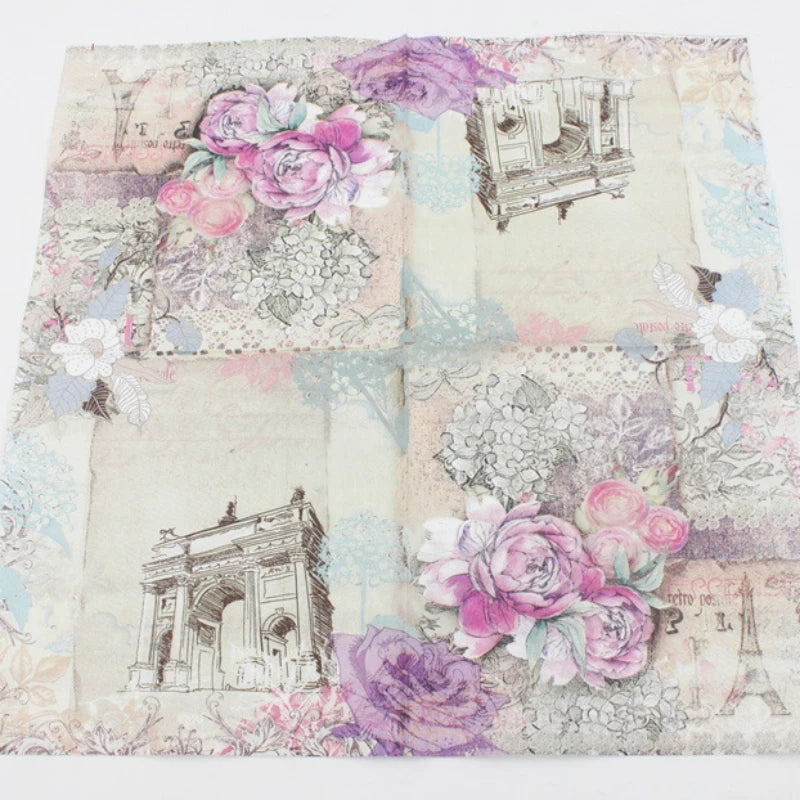 Diese luxuriösen Servietten zeigen ein detailliertes Eiffelturm-Motiv auf einem robusten 2-lagigen Blatt, 33x33 cm ausgeklappt. Nutzen Sie sie sowohl dekorativ als auch praktisch zur Reinigung.
