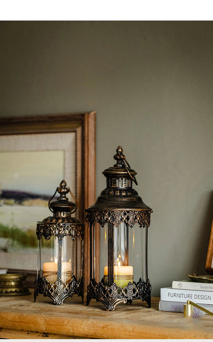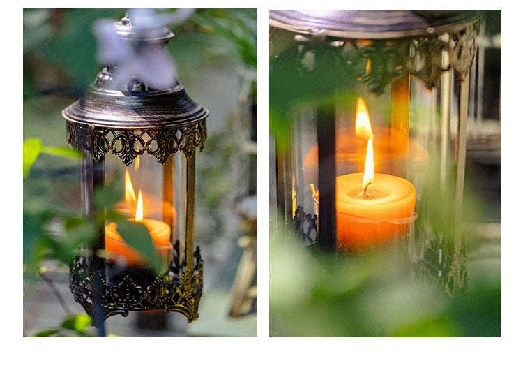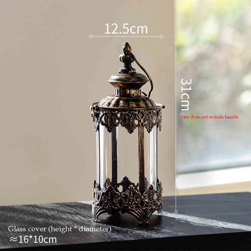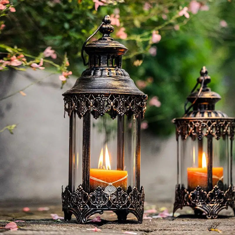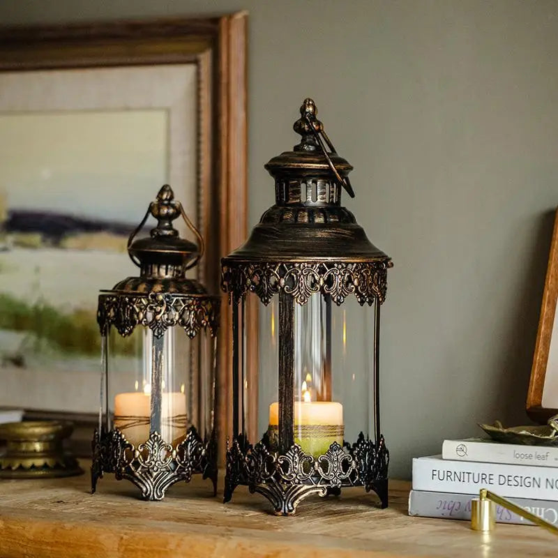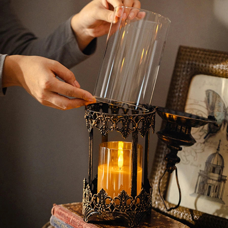 Dieser Hurrikan-Kerzenhalter präsentiert einen klassischen europäischen Stil, der mit reichen marokkanischen Einflüssen durchzogen ist und so zu einem herausragenden Stück in jedem Zuhause wird. Sein Eisenrahmen und die Glasummantelung schützen die Kerzenflamme vor Wind, ideal für den Ausseneinsatz.