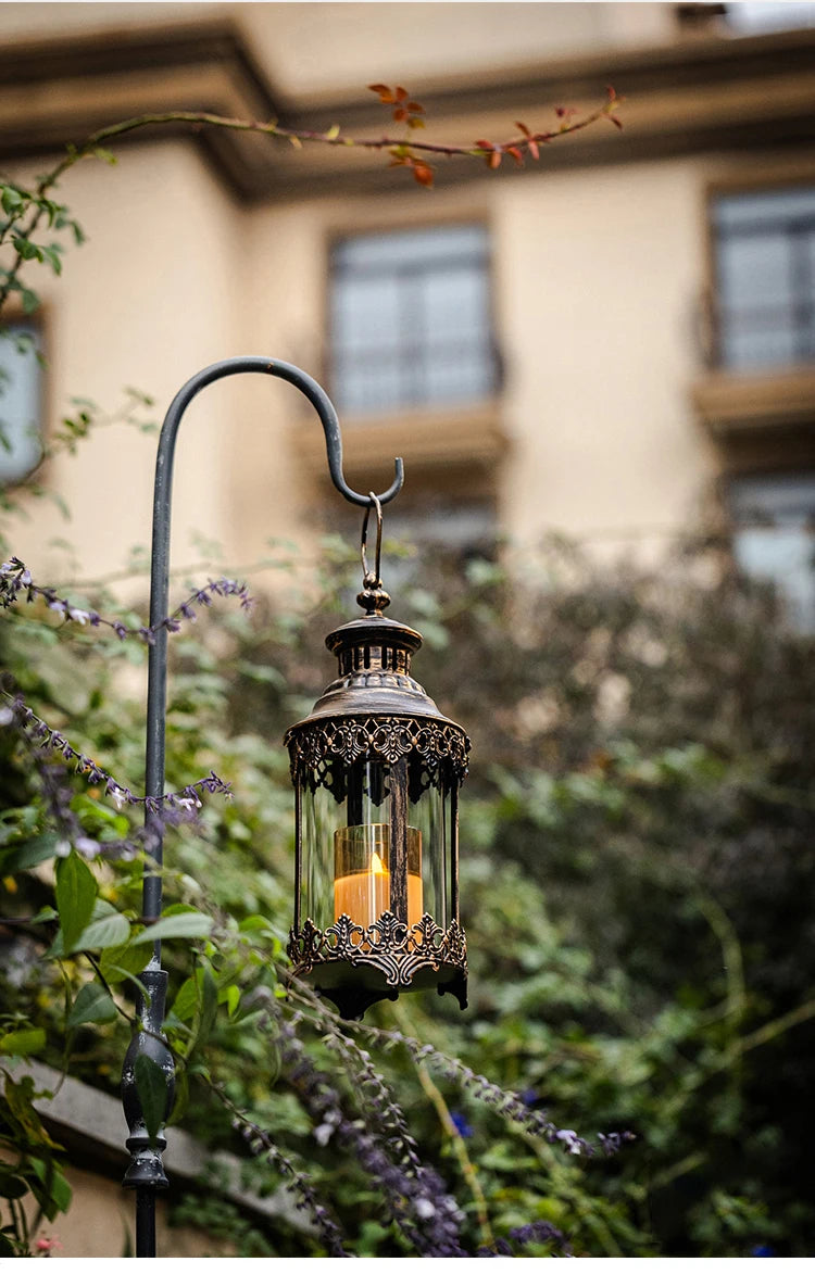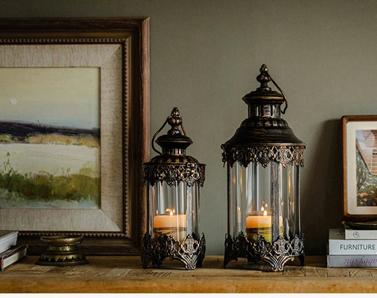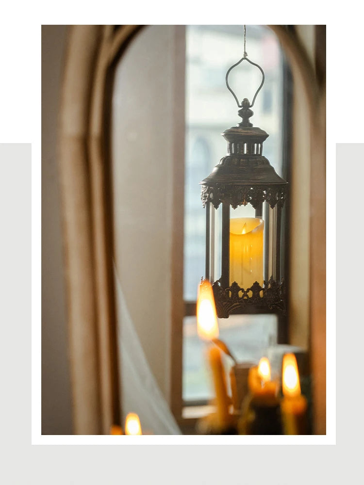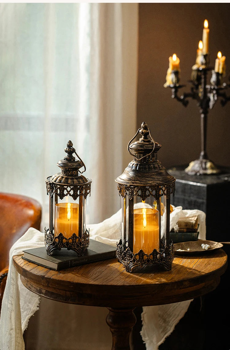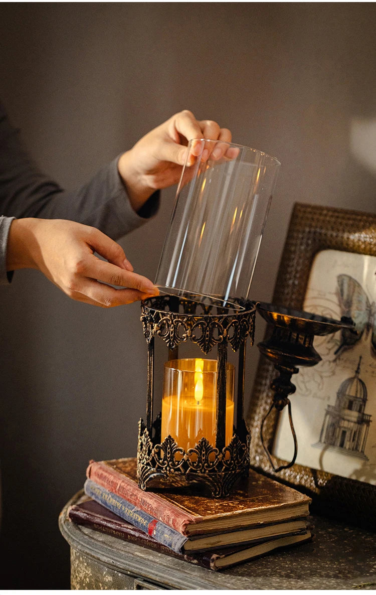 Dieser Hurrikan-Kerzenhalter präsentiert einen klassischen europäischen Stil, der mit reichen marokkanischen Einflüssen durchzogen ist und so zu einem herausragenden Stück in jedem Zuhause wird. Sein Eisenrahmen und die Glasummantelung schützen die Kerzenflamme vor Wind, ideal für den Ausseneinsatz.