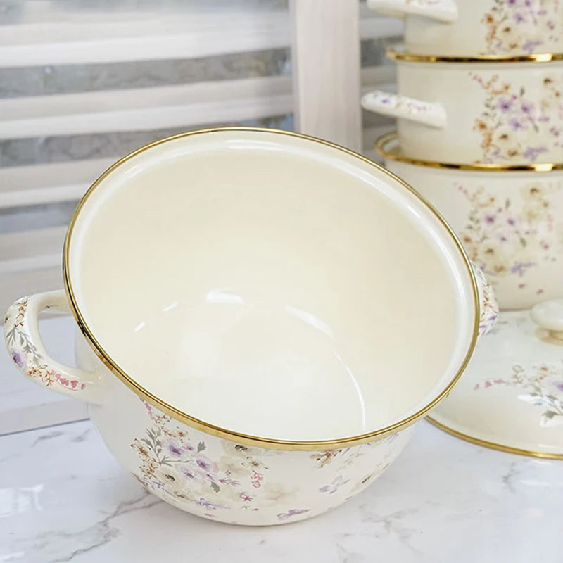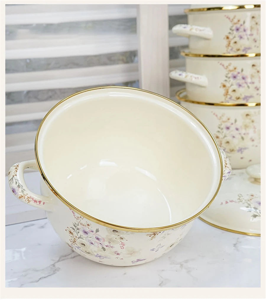 Email Kochtopf Plain Mit Deckel Doppelgriff Suppentopf Elegante Blumen Grosse Kapazität Verdickte Pfannen Küchenutensilien