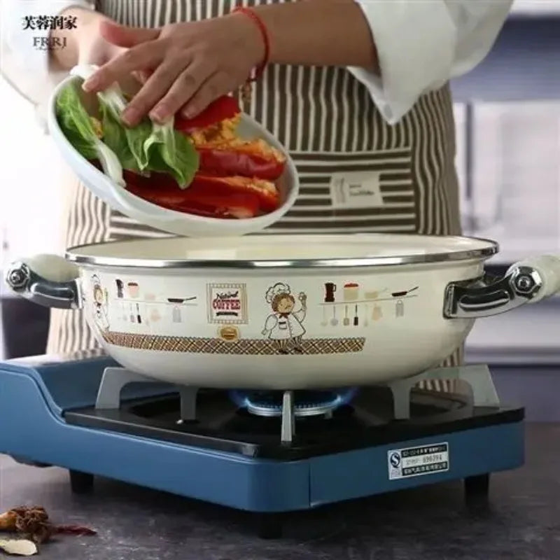 Hergestellt aus hochwertiger Emaille, ist der Topf ungiftig, gesund und umweltfreundlich. Die robuste Bauweise sorgt für Langlebigkeit und macht ihn zu einer zuverlässigen Wahl für den langfristigen Einsatz in der Küche.