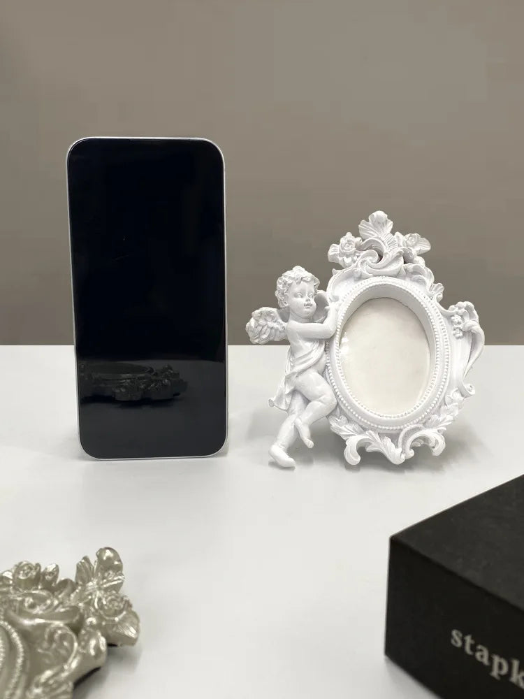 Verleihen Sie Ihrem Wohnzimmer oder Schlafzimmer europäischen Charme mit unserem 14cm Resin Engel Bilderrahmen. Dieses zarte Objekt verbindet Tradition und Stil und verspricht, Ihre Räume mit Anmut zu schmücken.