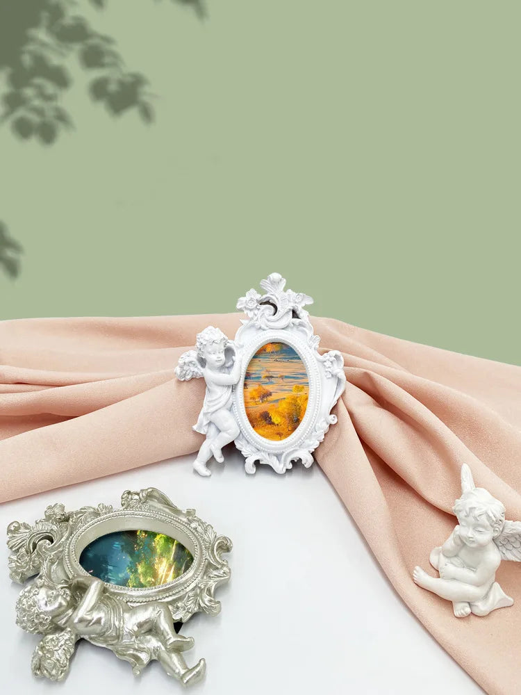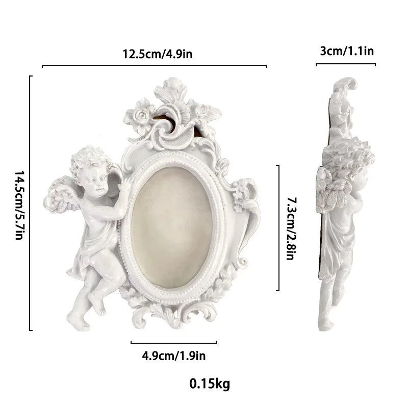 Verleihen Sie Ihrem Zuhause mit unserem 14cm Resin Engel Bilderrahmen ein elegantes Aussehen. Ein zeitloses Dekor im europäischen Stil, das sich mühelos an jede Umgebung anpasst.