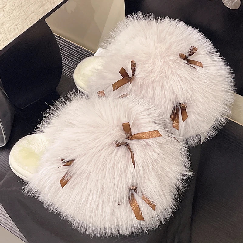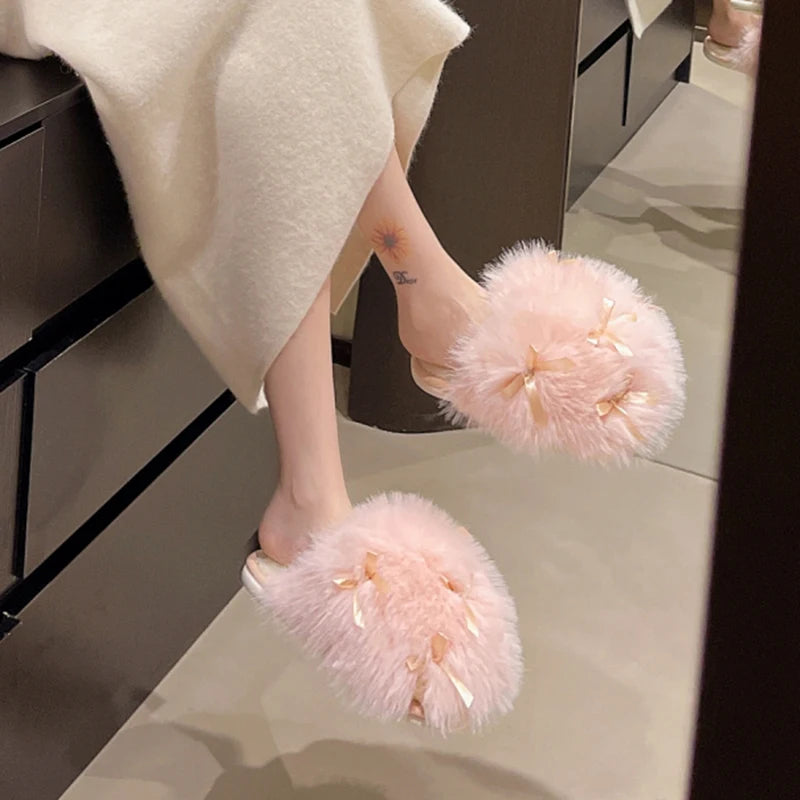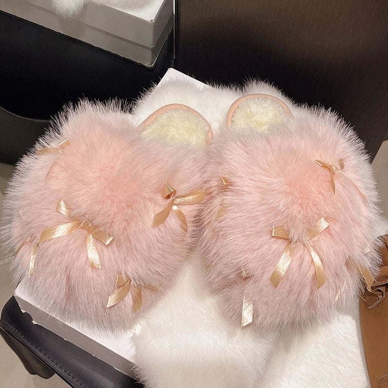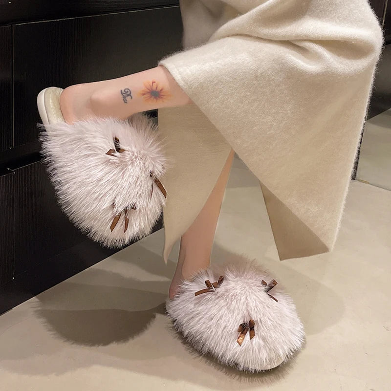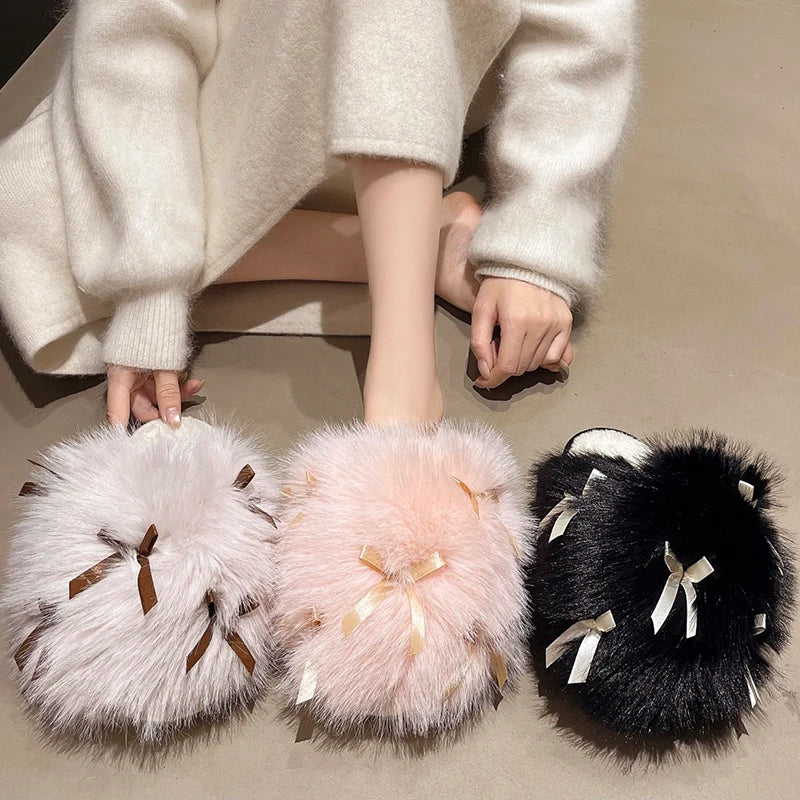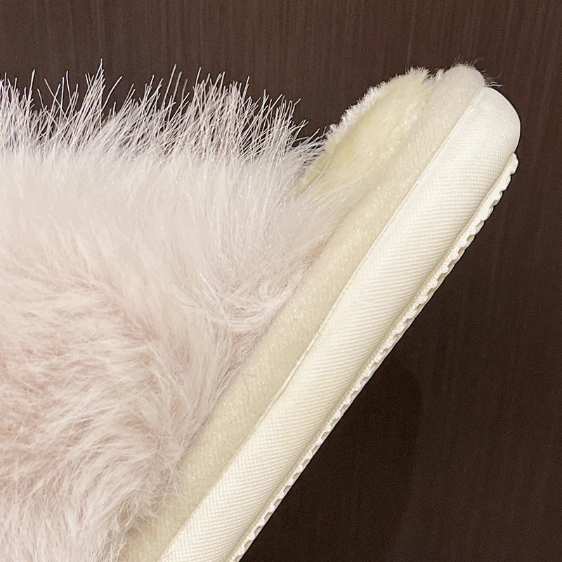 Treten Sie in luxuriöser Behaglichkeit mit unseren fein gestalteten flauschigen Pelzhausschuhen, die den ganzen Tag über Komfort und Stil bieten.