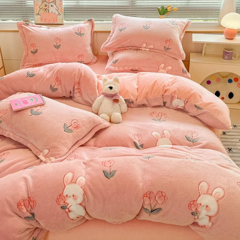 Geniessen Sie luxuriösen Komfort und zeitgenössischen Stil mit unserem Floral Milk Fleece Bettbezug, der Sie an kalten Nächten in Wärme hüllt.