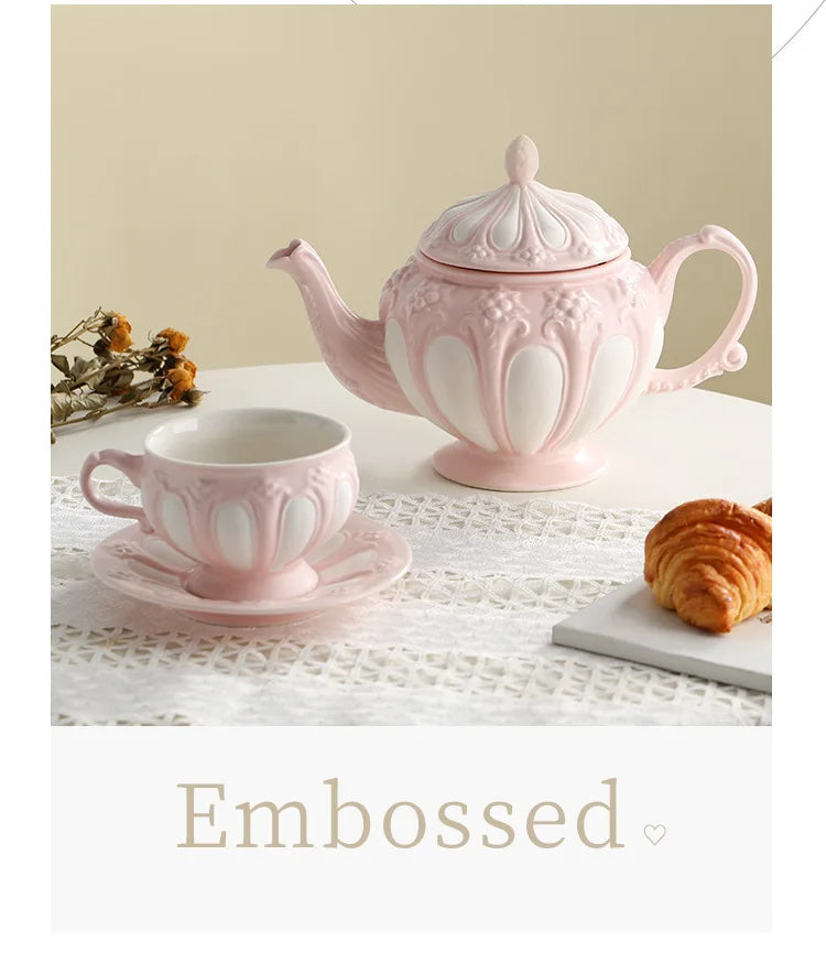 Produktname: Floral Reliefs Klassische Keramiktasse & Untertasse Teekanne