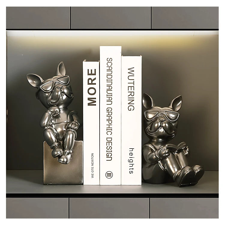 Verleihen Sie Ihrem Wohnraum mit unseren französischen Bulldogge-Buchstützen-Skulpturen – eine perfekte Mischung aus Charme und Raffinesse.