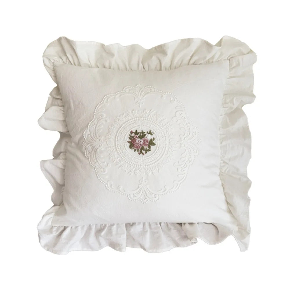 Unsere Französische Spitzenkissenhülle bietet einen Hauch von Eleganz und Komfort, ideal für jegliches Schlafzimmerdekor.